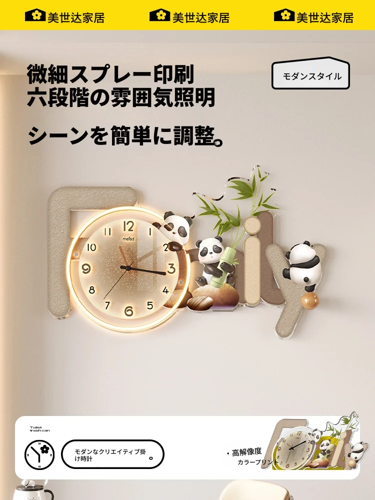 美世达パンダ掛け時計 - 新しいトレンドのレストラン装飾アート!高級感あふれるリビングやソファの背景にぴったりな、スタイリッシュな壁掛けアートです。あなたの空間に特別な魅力をプラス!