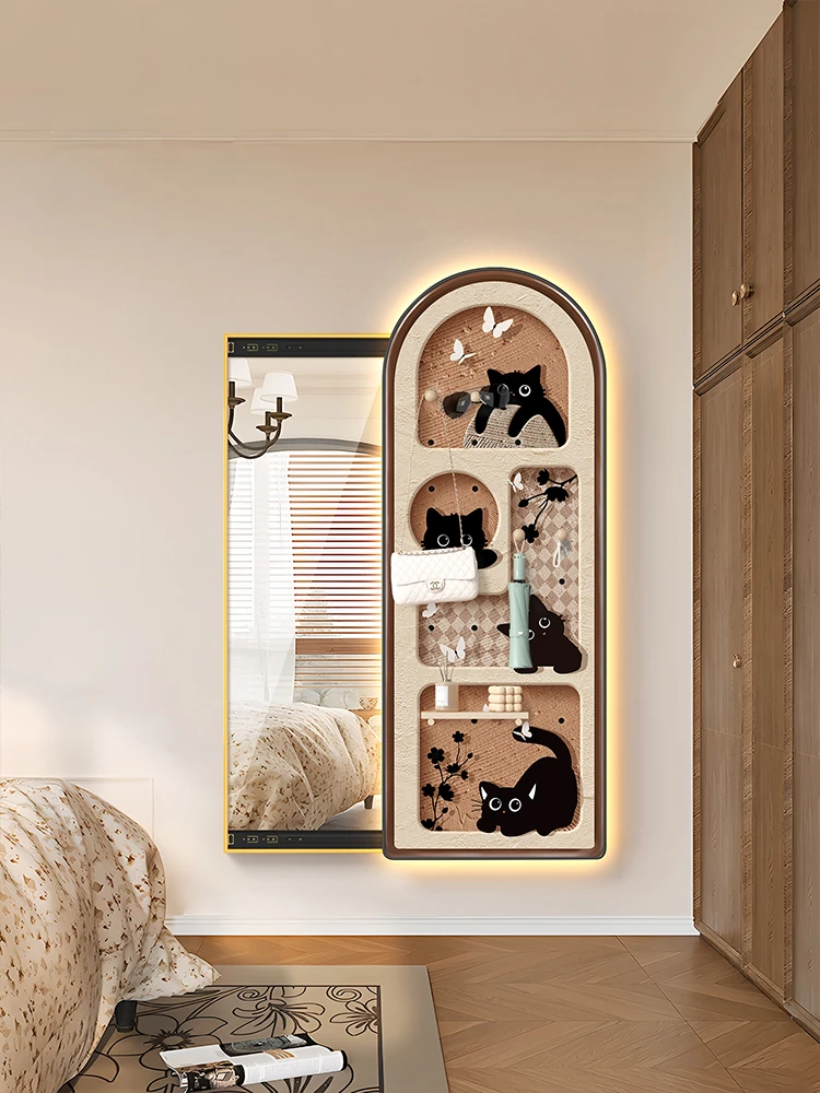 アンティーク風全身鏡 隠れた穴あきボード付き 収納式ドレッシングミラー 一体型玄関用 隠しスライドミラー 魅力的なデザインでおしゃれな空間を演出!