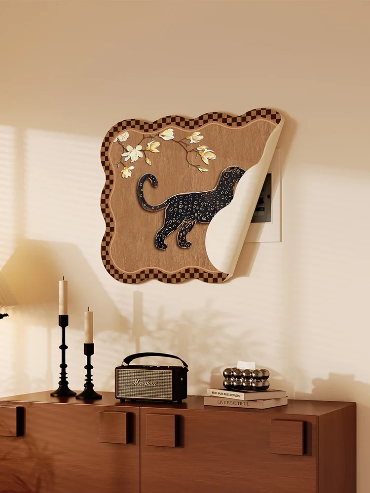 2024年新作!穴あけ不要のレトロ風ゴールドヒョウ電気メーターBOX装飾画。マグネット式で簡単取り付け、電気ボックスをスタイリッシュにカバー!お部屋に彩りを加える必見アイテム!