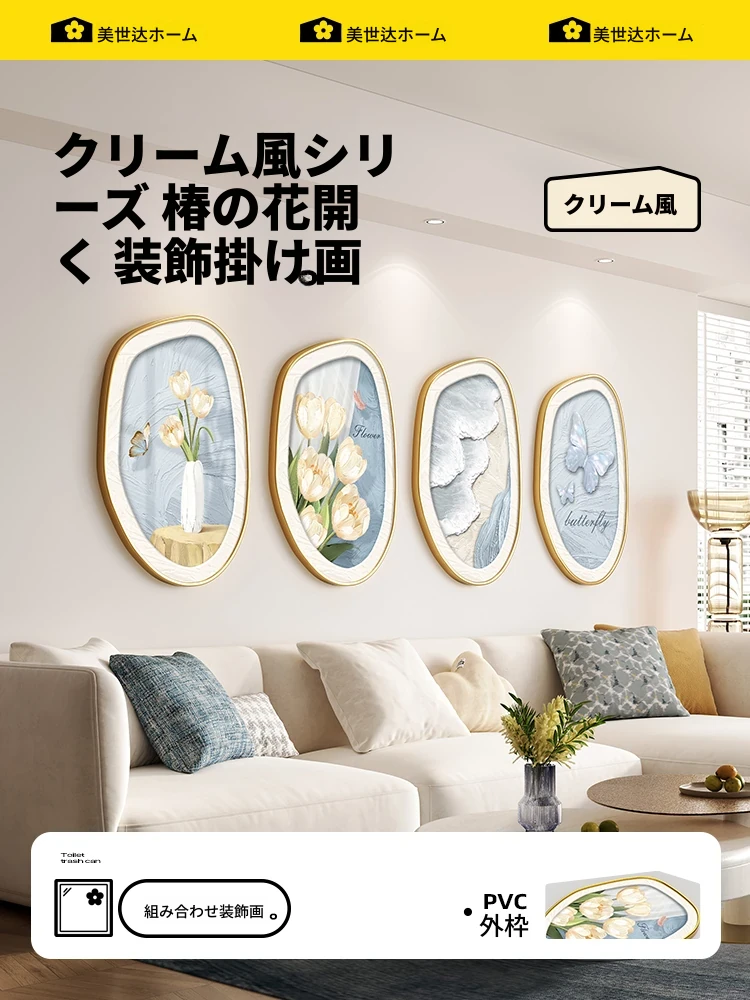 高級感あふれるチューリップクリーム風リビングルームの装飾画 - ソファの背景壁画に最適!シンプルでモダンなデザインで、大人の空間を華やかに演出します。