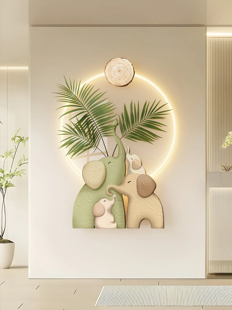 クリーミーな象のインテリアアート - 玄関にぴったりのウォールランプ!廊下や通路を照らす光る掛け画、訪問者を歓迎するリビングルームの壁画としても最適です。