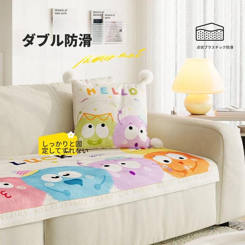 ミスタカートゥーン冷感ソファカバー2024新作!夏にぴったりの滑り止め機能付き、四季通用デザインで快適さを提供。あなたのリビングをおしゃれに演出しましょう!