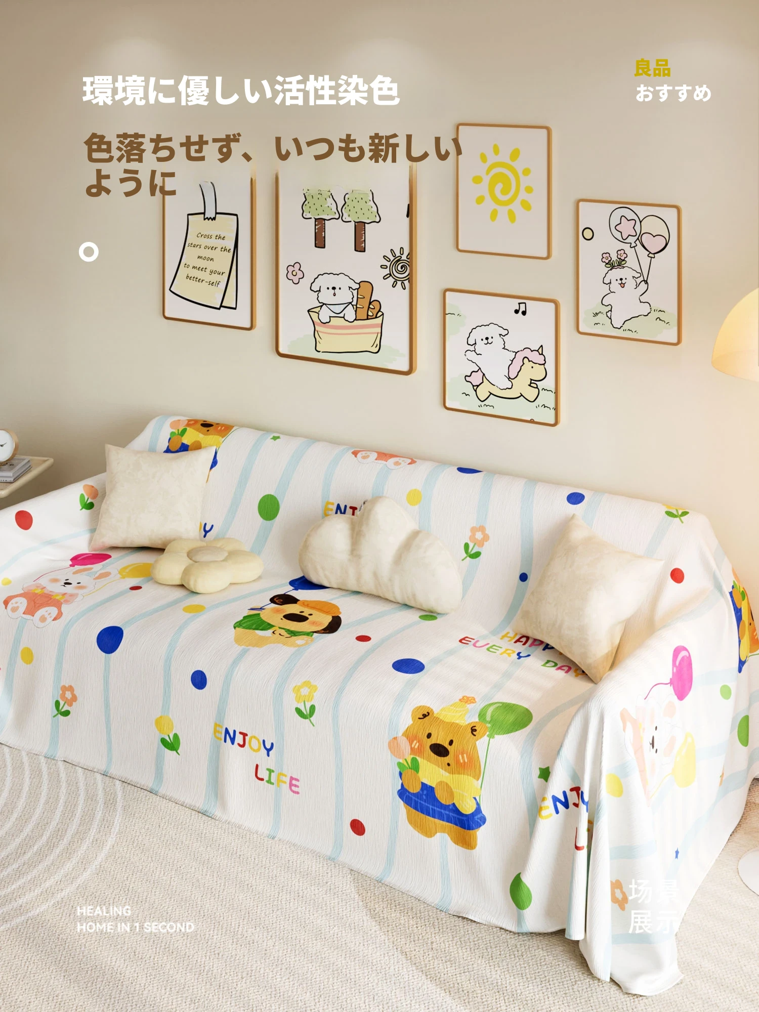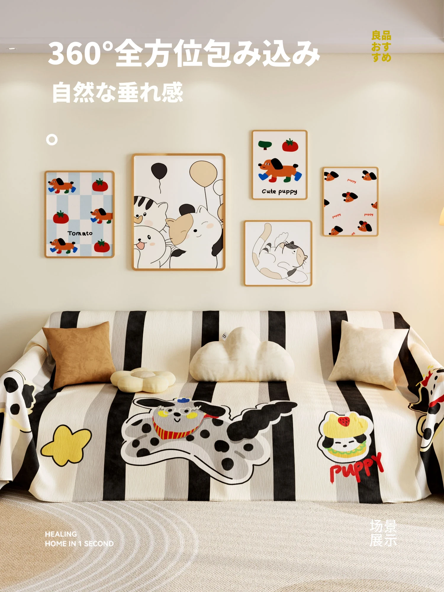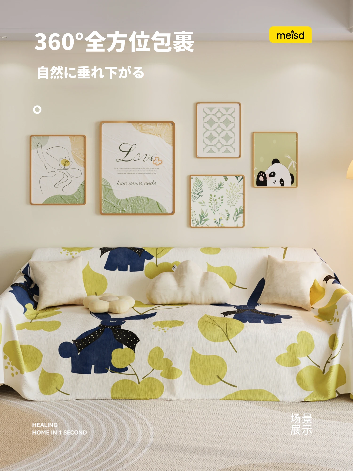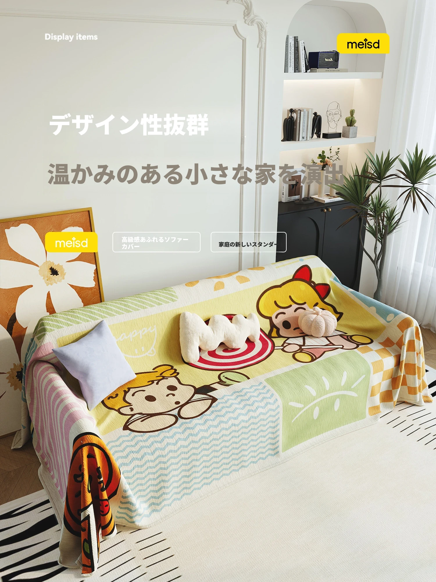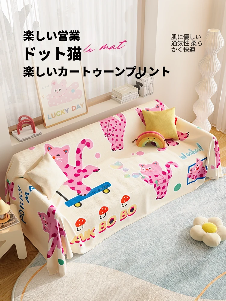 美世达シニールソファカバー - 四季対応のフルカバー、可愛いカートゥーンデザイン、ホコリ防止&猫の爪対策!あなたのリビングをオシャレに守る日本スタイル!