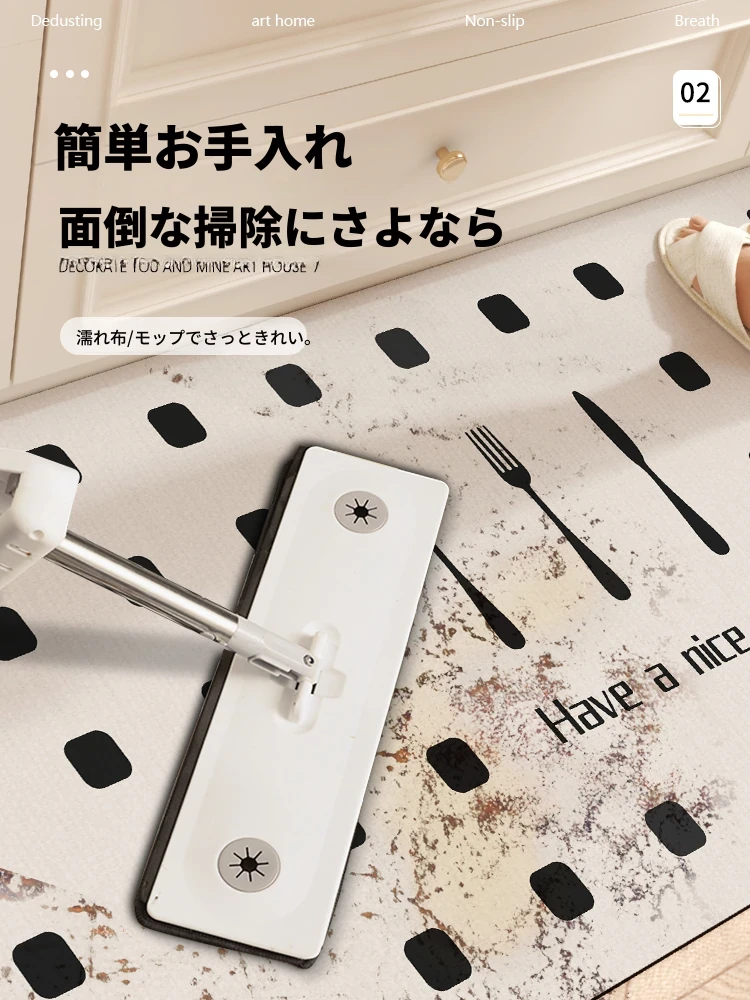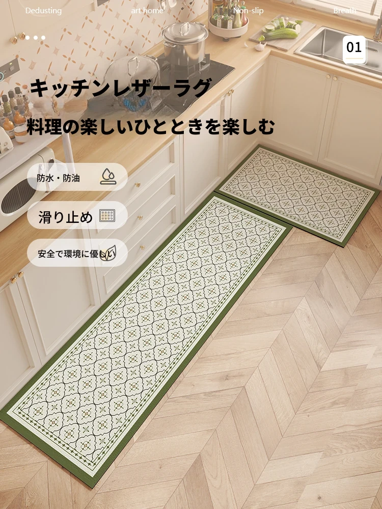 美世达キッチン専用マット|洗浄不要・拭き取り可能・防水・防油・滑り止め機能付き|家庭用足元マット|吸水性抜群・転倒防止・かわいいデザインでキッチンをおしゃれに!