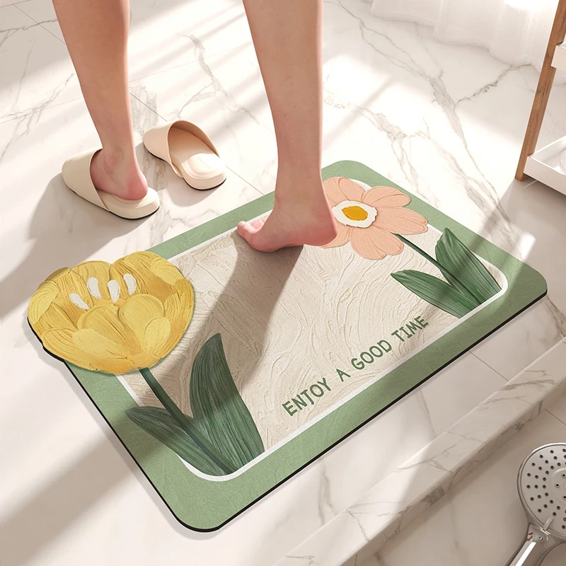 メイシーダ 吸水防滑フラワーマット 高級感あふれるトイレ・シャワールーム用 おしゃれで安全なバスルームマット 玄関やトイレの入口に最適!
