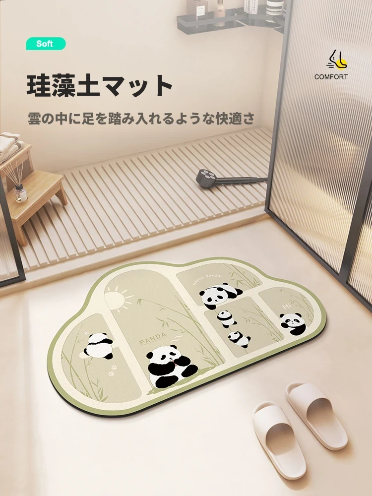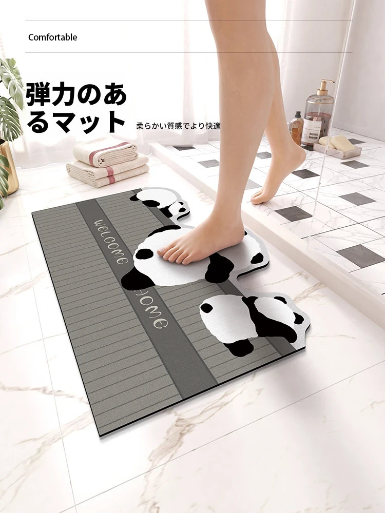 美世达パンダデザインの吸水バスマット!トイレや洗面所にぴったりの滑り止め付きで、安全性抜群。玄関にも最適な可愛いデザインで、毎日の生活を楽しく彩ります。