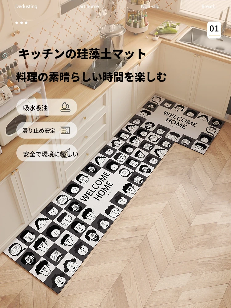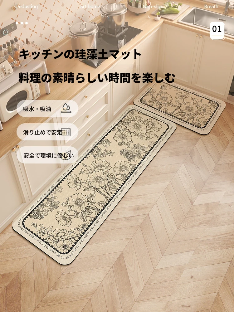 ミセダ速乾キッチンマット|油汚れ防止・滑り止め・抗菌設計|洗濯不要の吸水性マットで、安全・快適なキッチン空間を実現!