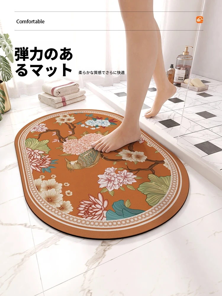 美世达 高級感あふれるフラワーデザインの防滑バスルーム吸水マット - トイレや洗面所に最適!速乾性で清潔を保ち、滑り止め機能付きで安心。快適な毎日をお届けします!
