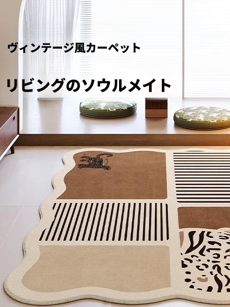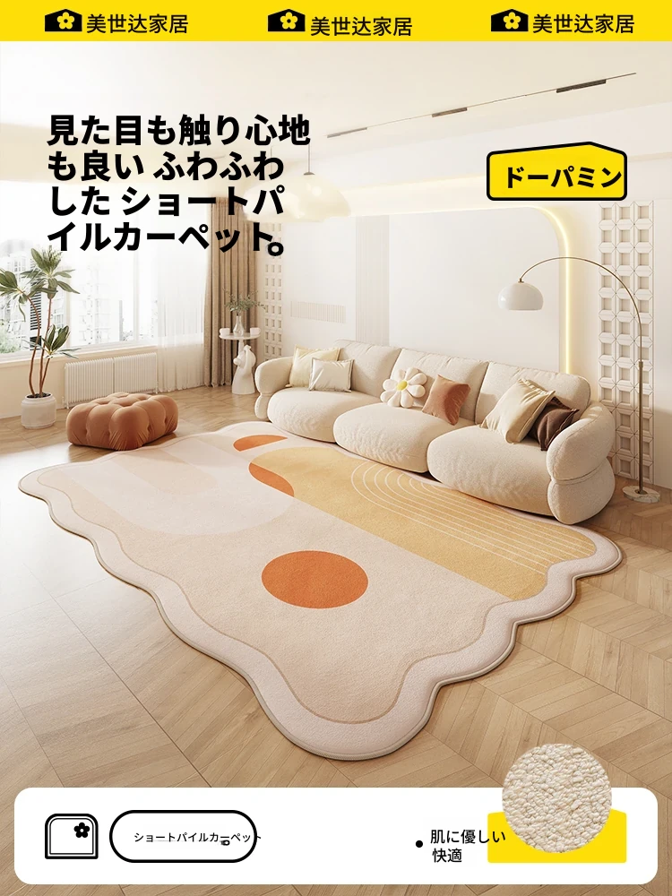 美世达クリーム風ラグマット 2024新作!お手入れ簡単、洗わずに使える高級感あふれるリビング・寝室用の異形デザイン!あなたの空間を優雅に演出します。