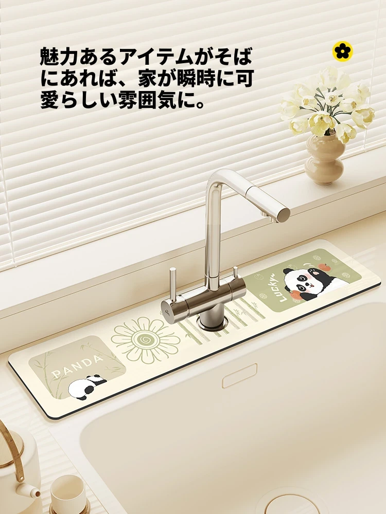 2024年新款!美世达熊猫キッチン専用マット - 滑り止め・油汚れ防止・お手入れ簡単・吸水性抜群の家庭用マットで、快適なキッチンライフを実現!