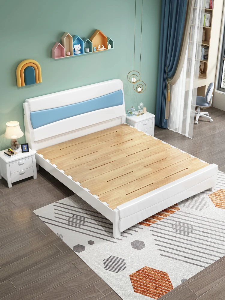 Solid Wood Children's Bed for Boys - 1.2/1.5m Single Storage Bed in Compact Design with Mortise and Tenon Structure - Budget-Friendly Princess Bed for Small Spaces