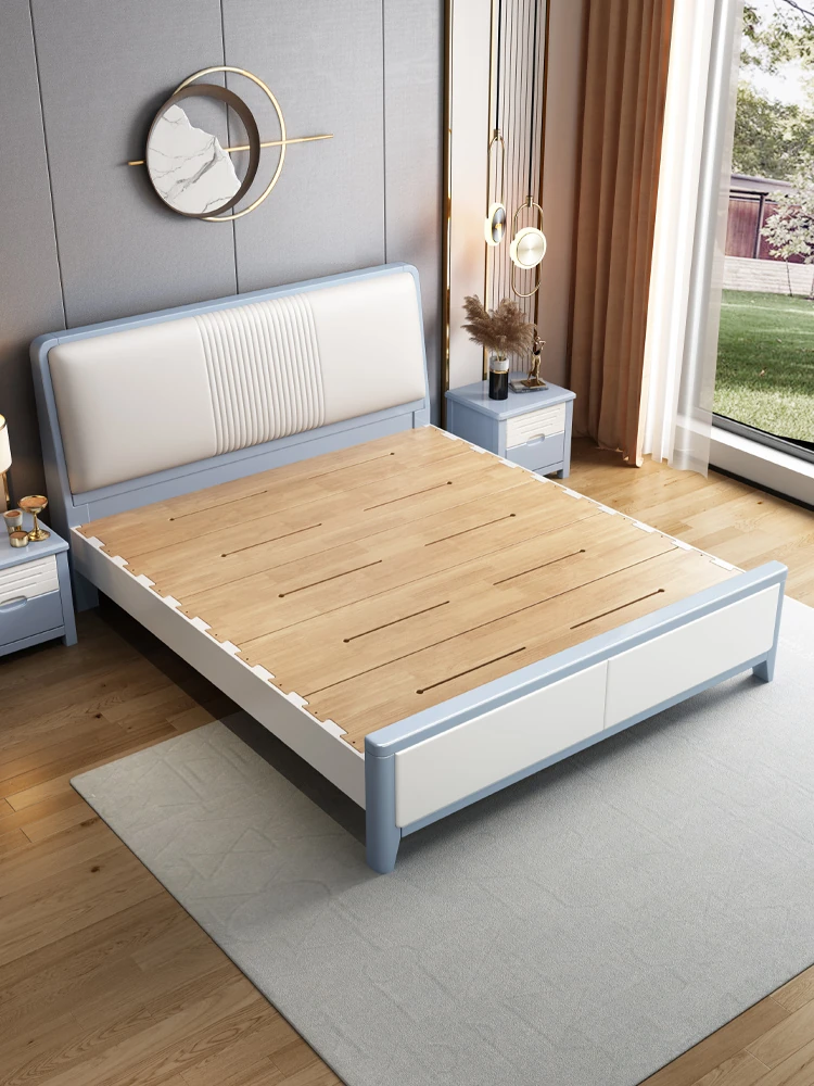 Nordic Soft-Back Solid Wood Bed - 1.8m Double Bed with Tech Fabric for Master Bedroom, 1.5m Modern Minimalist Luxury Storage Wedding Bed