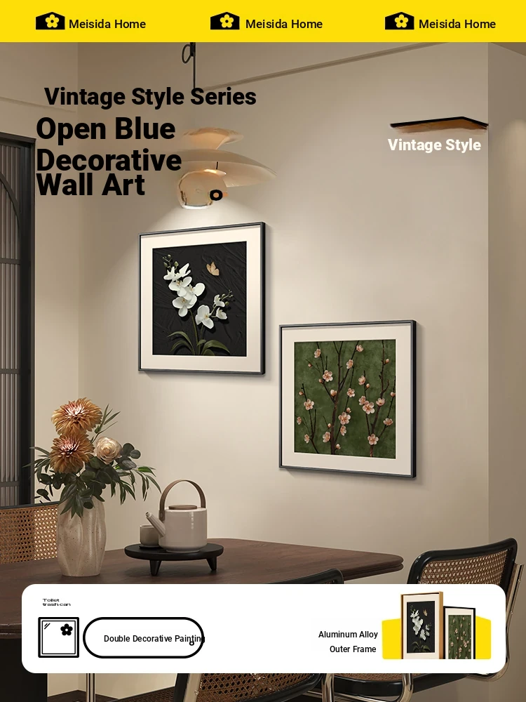 Meisida New Chinese Style Wall Art for Living Room and Dining Room - 2024 Collection, Perfect for Sofa and TV Background, Stylish Entryway Decor