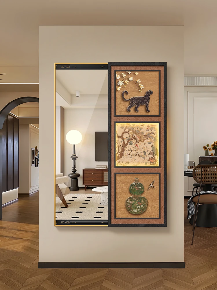 Vintage Hidden Full-Length Mirror with Decorative Artwork - Concealed Dressing Mirror and Pull-Out Mirror for Entryway Wall Art