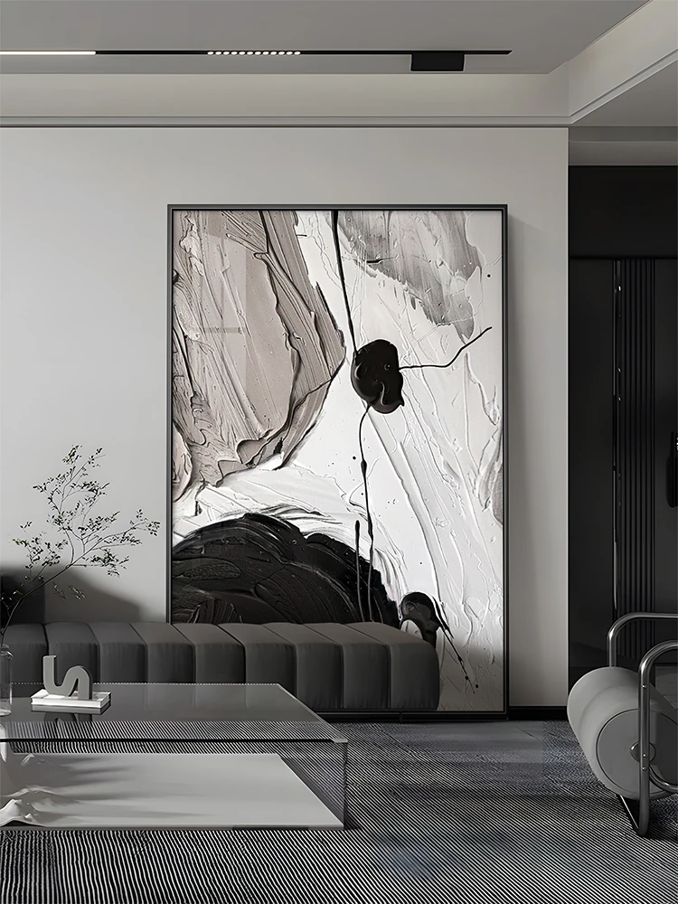 Abstract Modern Black and White Wall Art for Living Room - Minimalist Corridor and Entrance Decor, Elegant Sofa Background Wall Painting