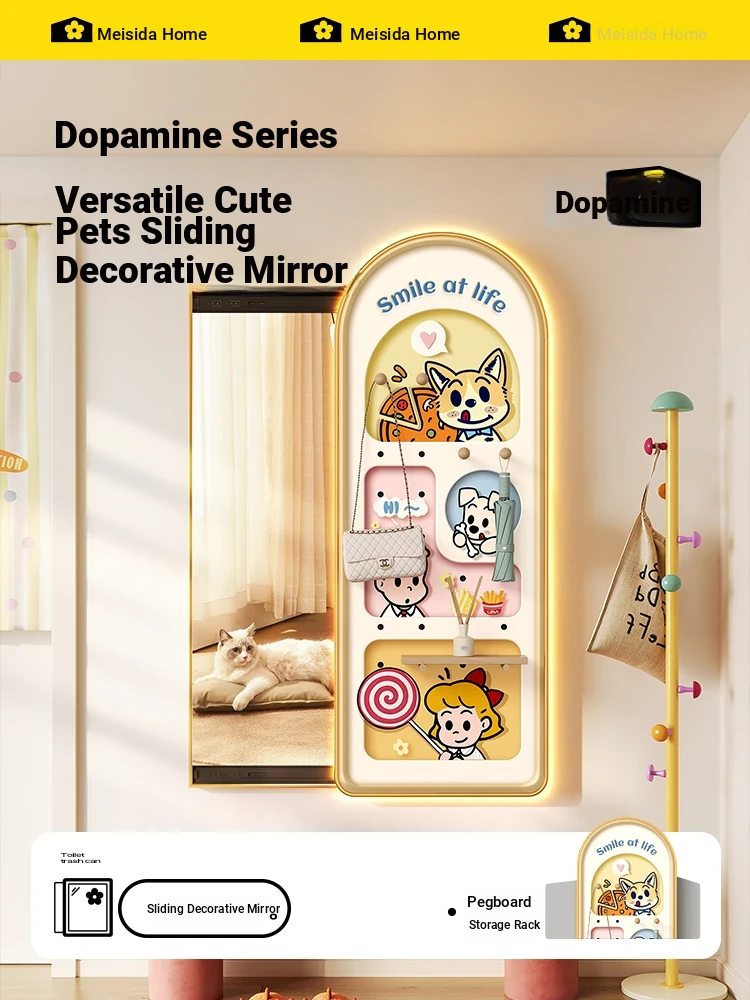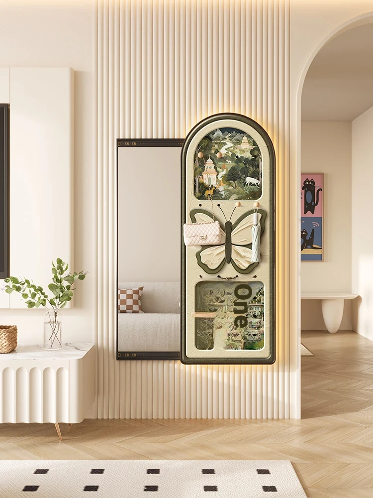 Meisida Creamy Style Decorative Mirror: Hidden Full-Length Sliding Dressing Mirror Art for Your Entryway and Living Room
