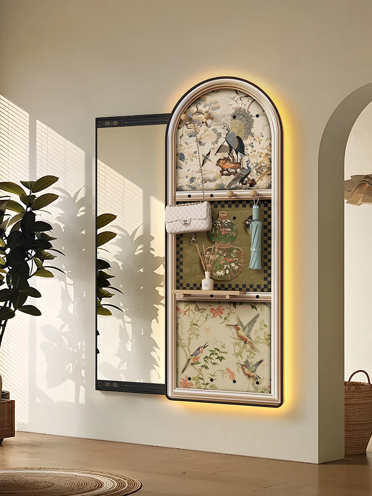 Vintage Style Full-Length Mirror - Elegant Hidden Sliding Wardrobe Artwork for Entrance and Bedroom Décor - Space-Saving Mirror Wall Art