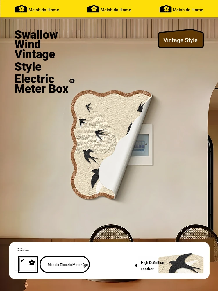 Vintage Cat-Themed No-Drill Electric Meter Box Decorative Art - 2024 New Magnetic Switch Cover Sticker for Concealing Distribution Boxes
