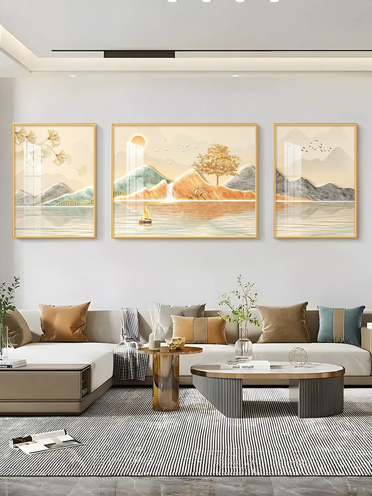 Elegant Mountain and Water Landscape Painting for Living Room - Luxurious Sofa Background Wall Art, 2024 New Arrival, Stylish Large Wall Decor