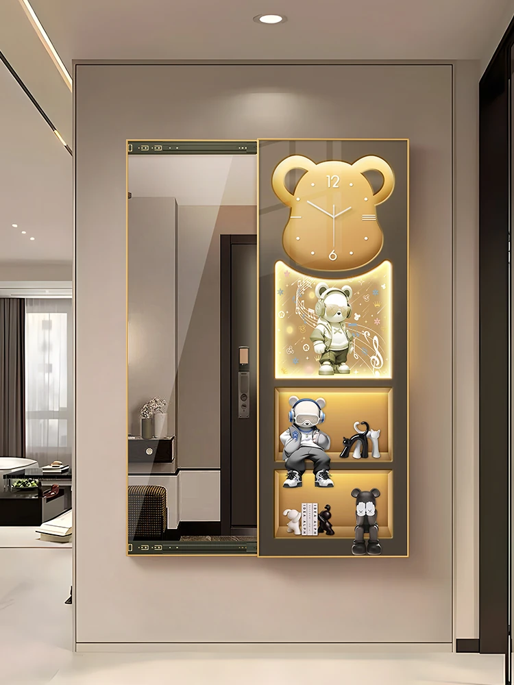 Meisida Hidden Pull-Out Full-Length Mirror with Decorative Bear Design - Stylish Concealable Dressing Mirror for Entryway Wall Art