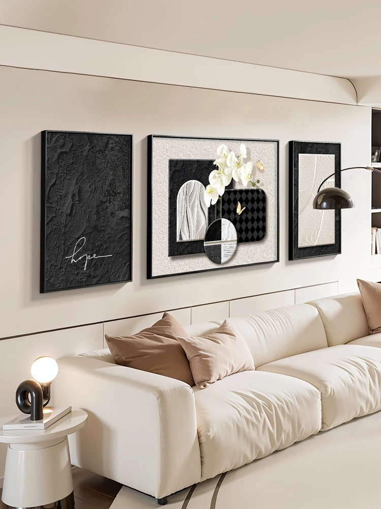 Modern Minimalist Decorative Art for Living Room - Elegant French Sofa Background Wall Artwork, Abstract Triptych for a Chic and Sophisticated Touch