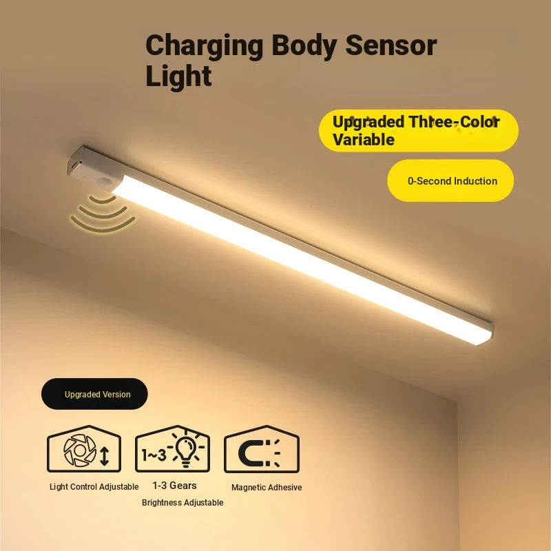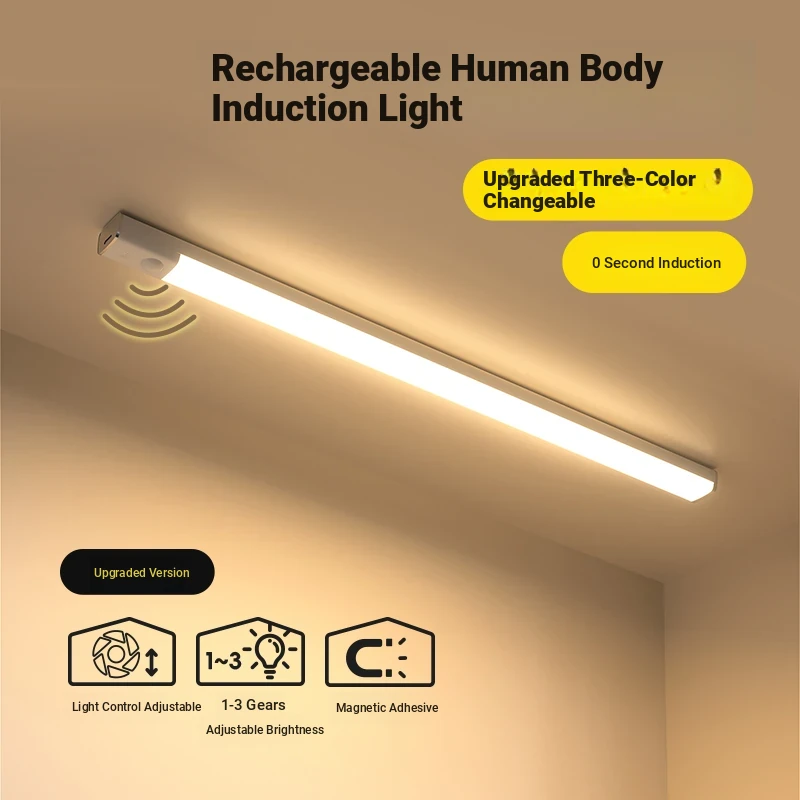 Meisida LED Rechargeable Induction Wireless Energy-Saving Ceiling Light with Magnetic Bulb Strip for Closet, Bookshelf, and Wardrobe - Perfect for Modern Home Décor!