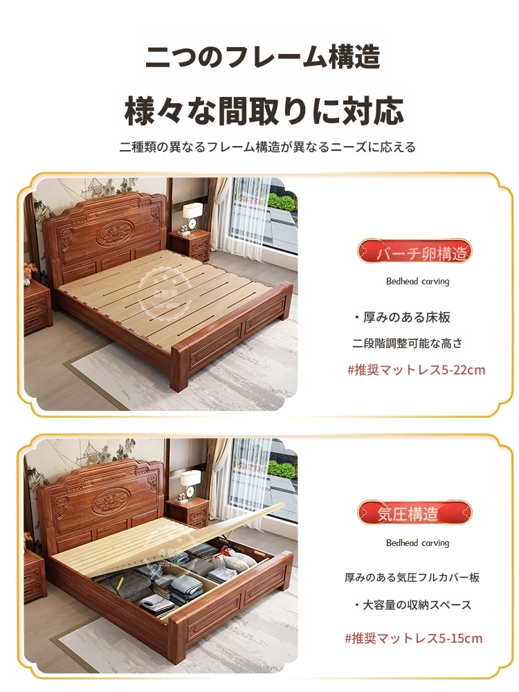 花梨木ベッド+10cm両面アイスシルクラテックスココナッツマットレス