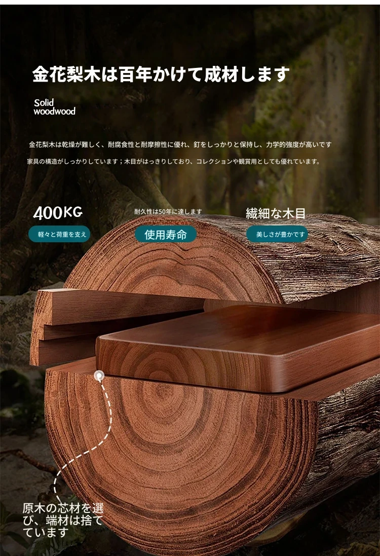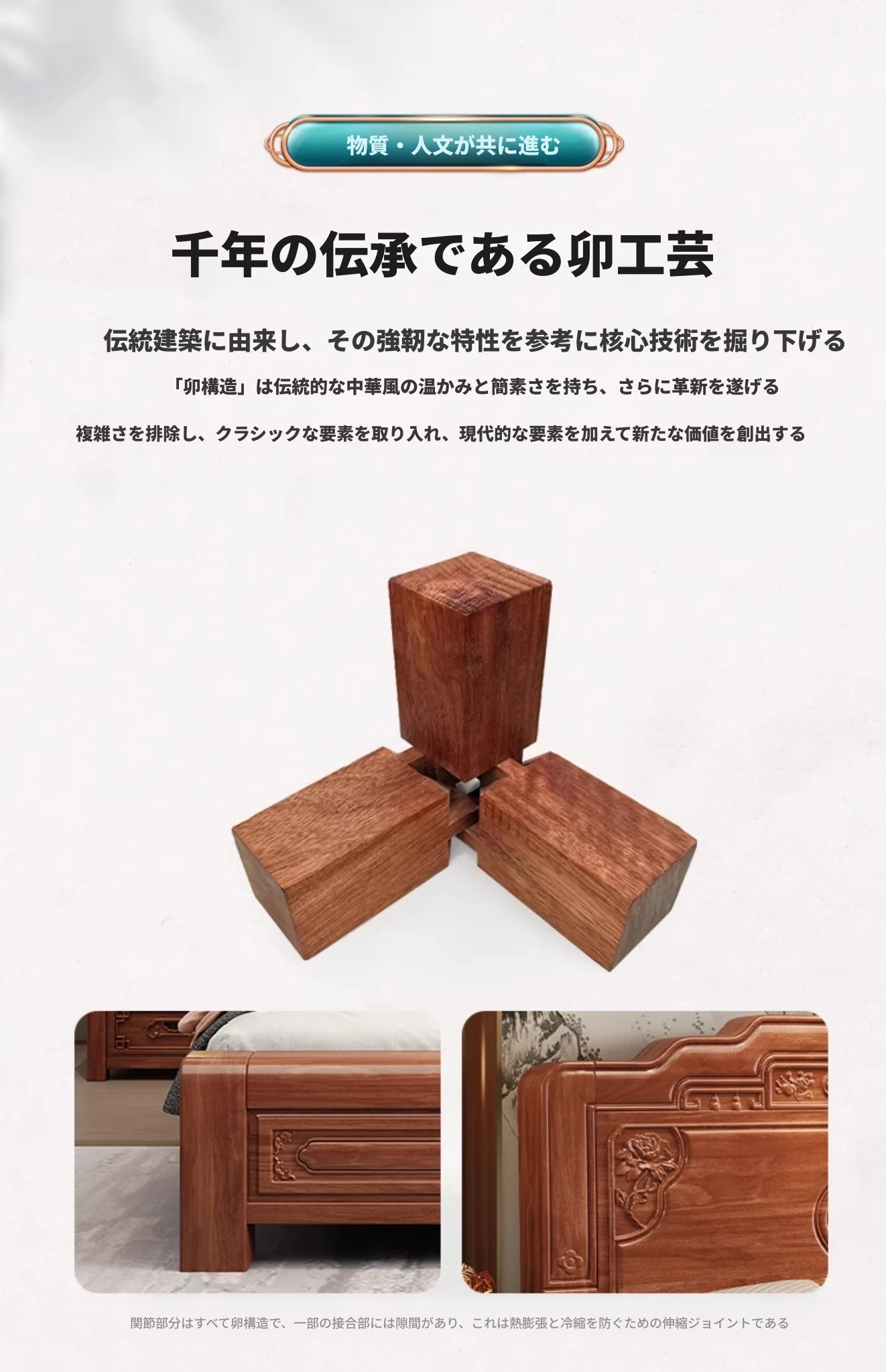花梨木ベッド+ナイトテーブル*1【全ての接合構造】