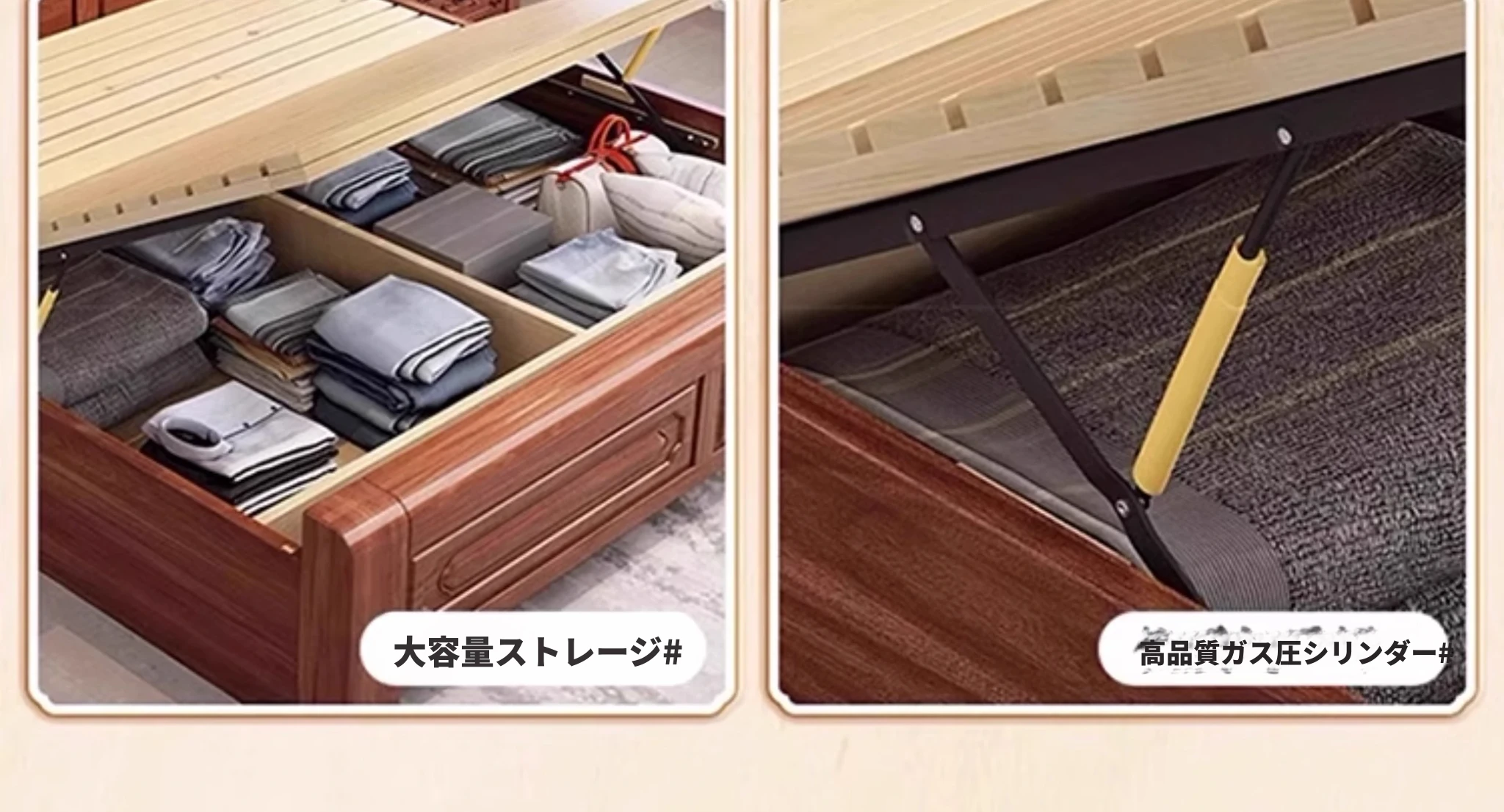 花梨木ベッド+22cm両面アイスシルクラテックススプリングマットレス