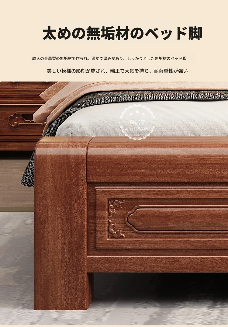 花梨木ベッド+カシミヤ背中保護全ココナッツマットレス+2キャビネット