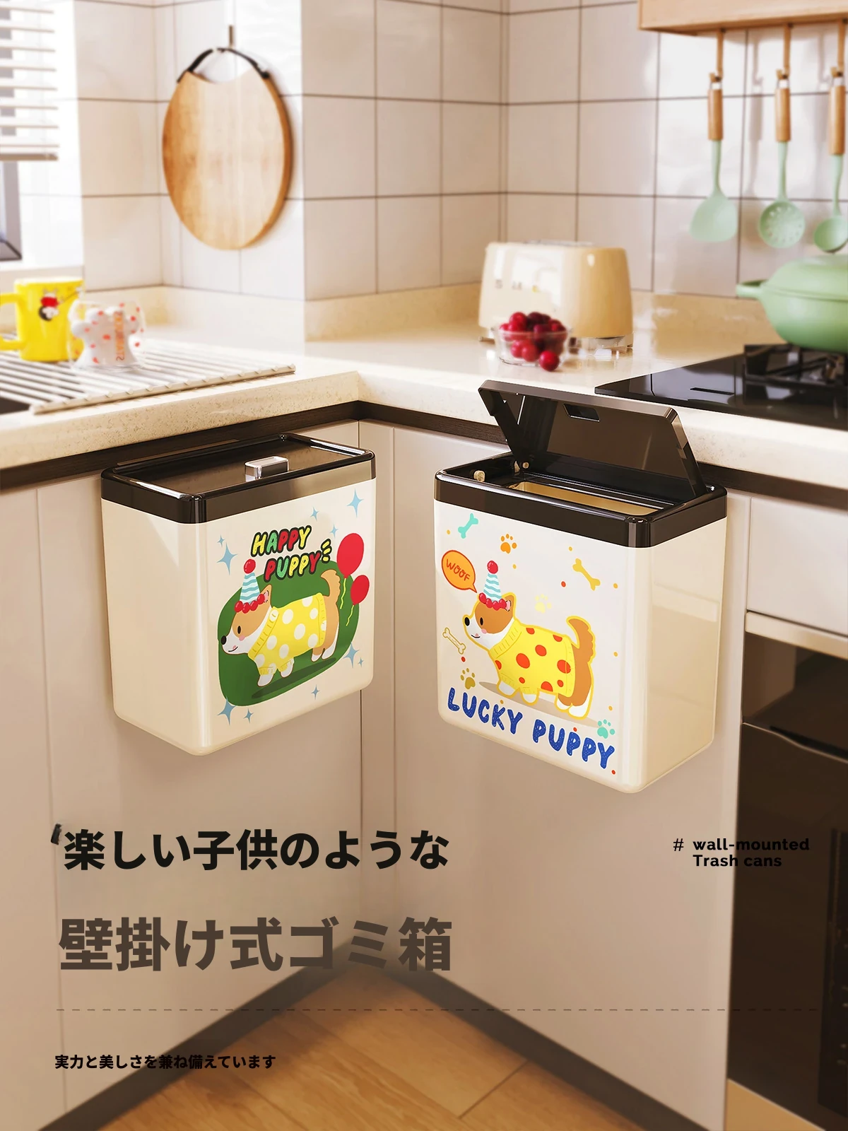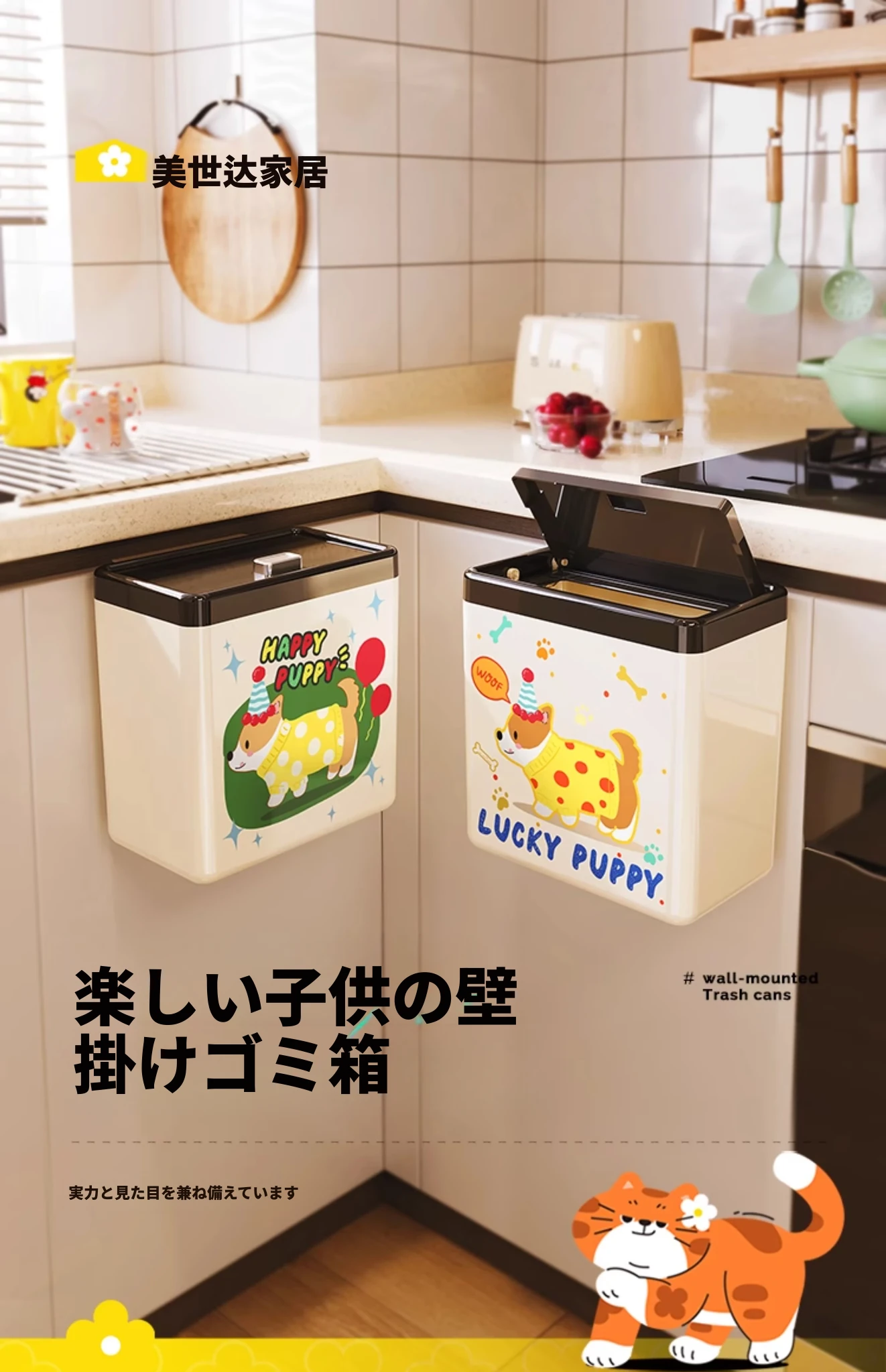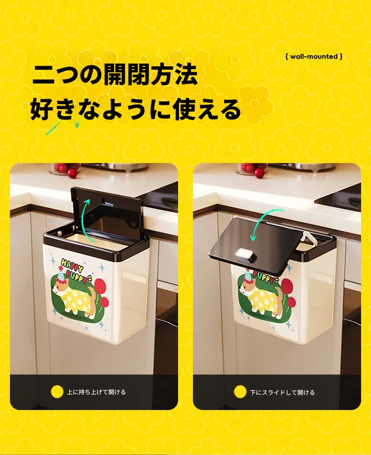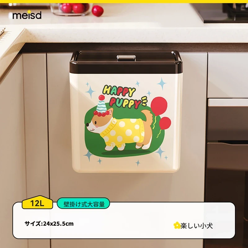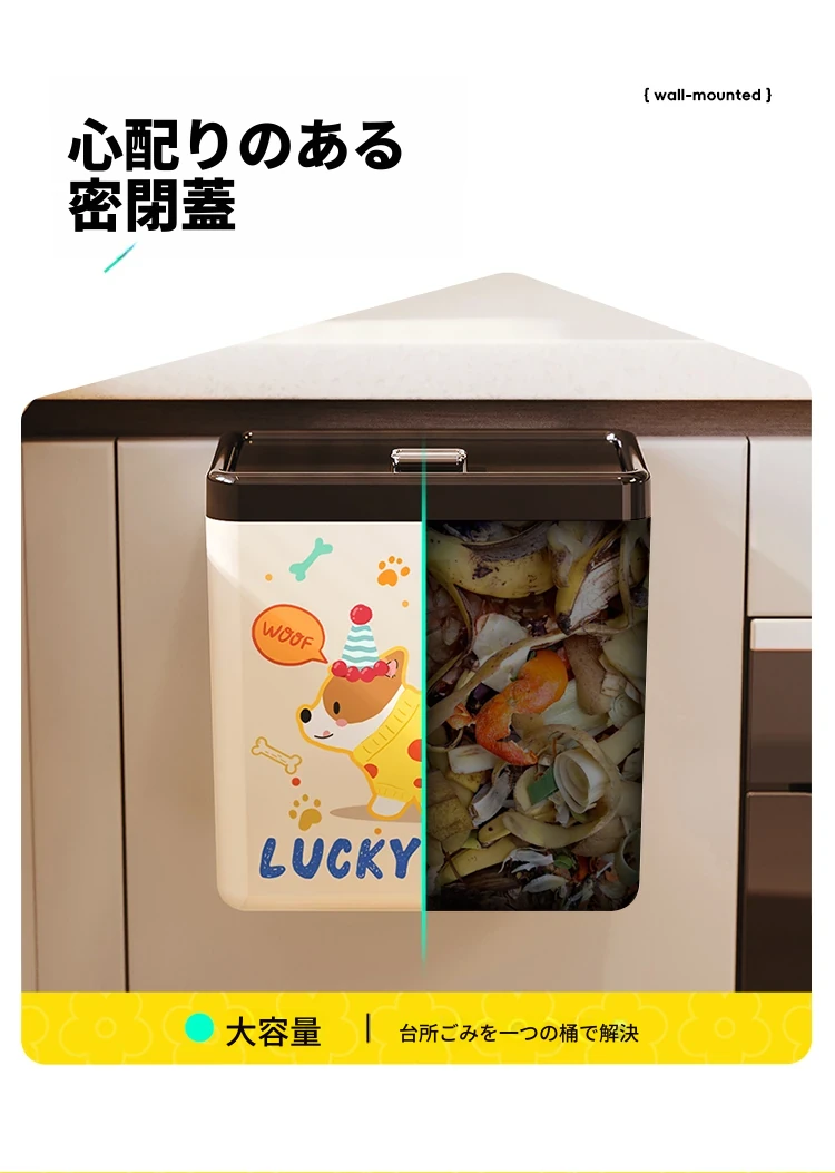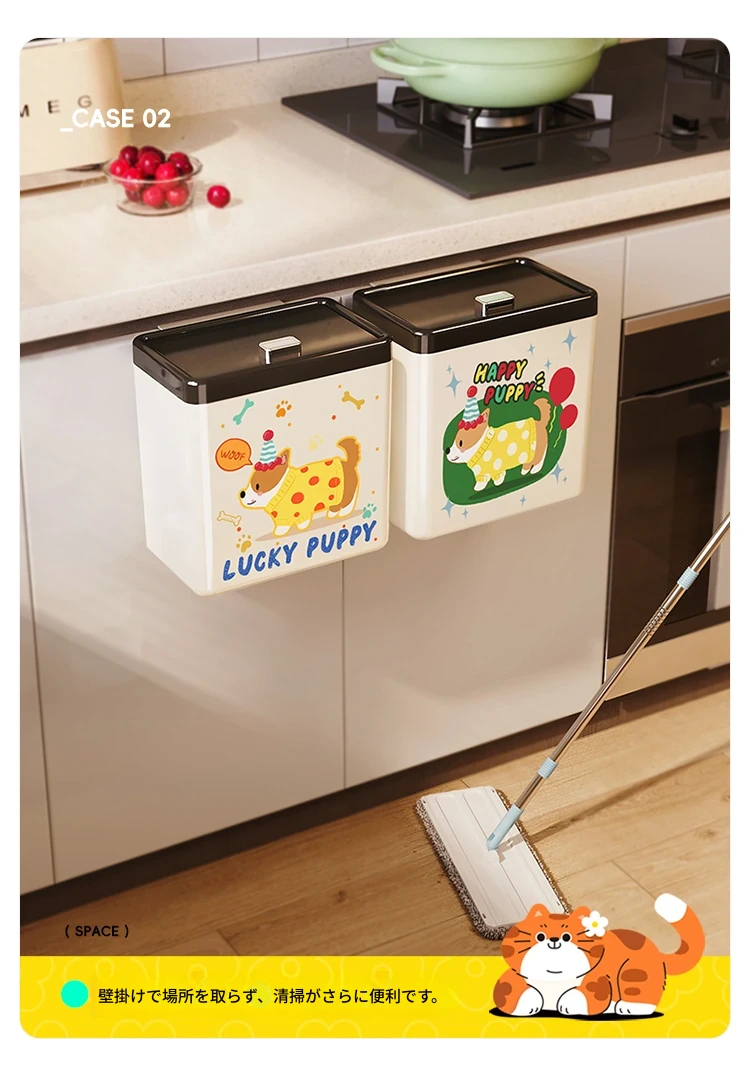 美世达カートゥーンキッチンゴミ箱 壁掛け式 大容量 おしゃれなデザイン トイレ・バスルーム用 蓋付きで清潔感アップ!