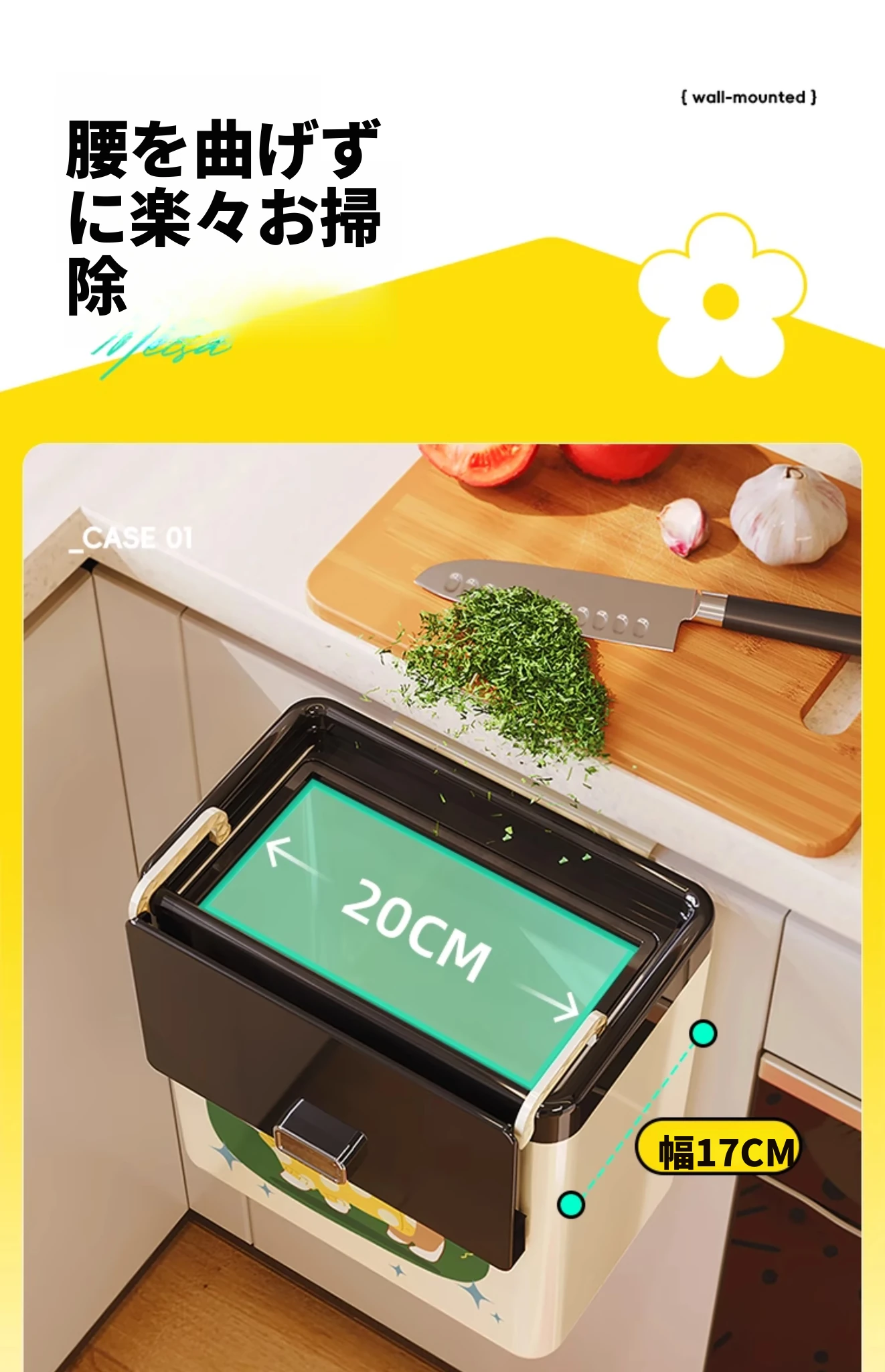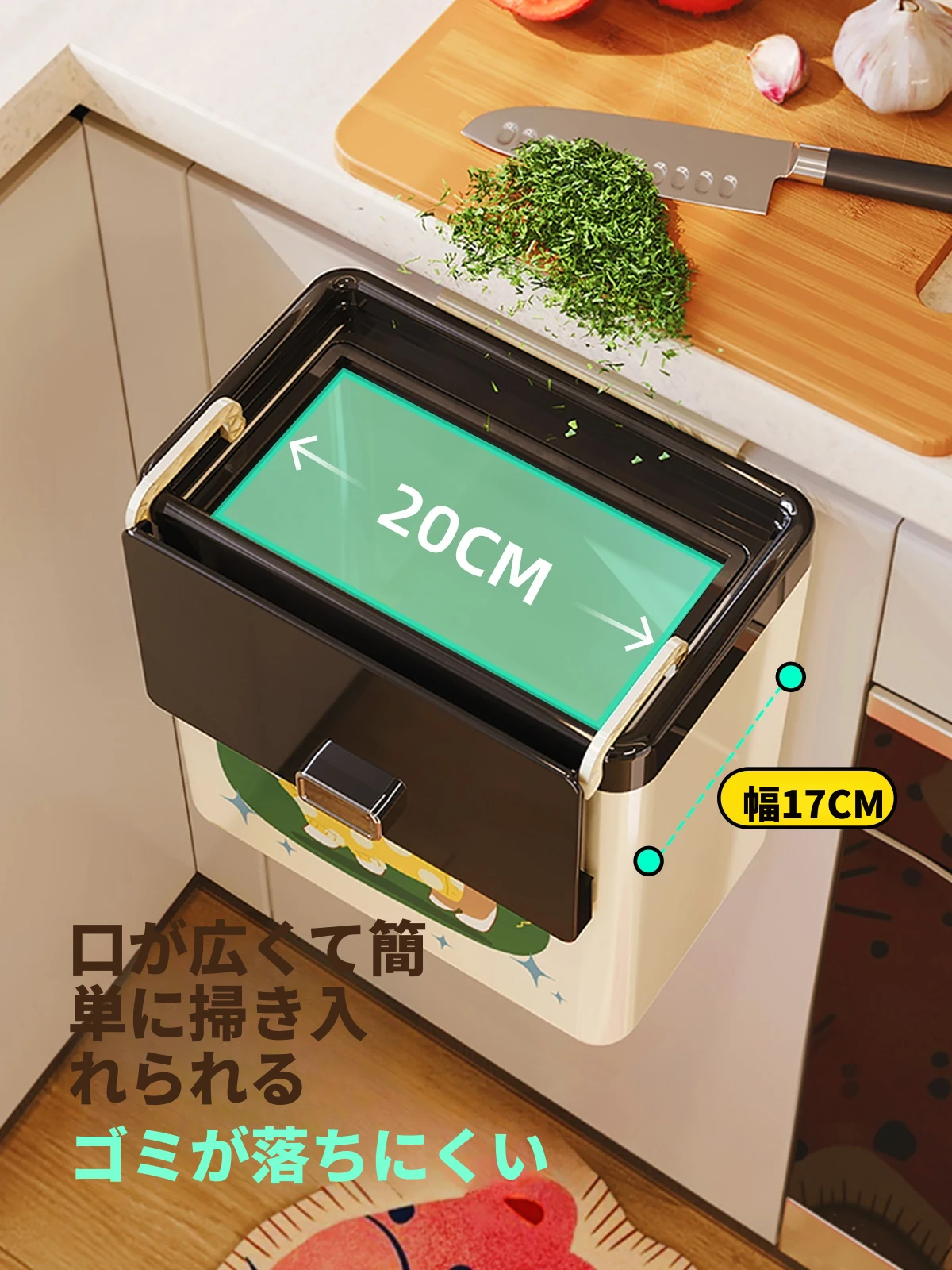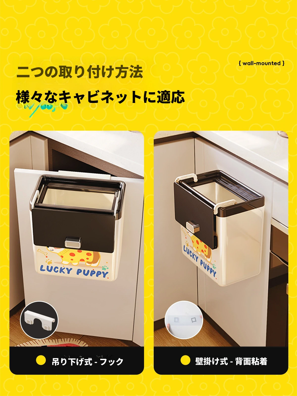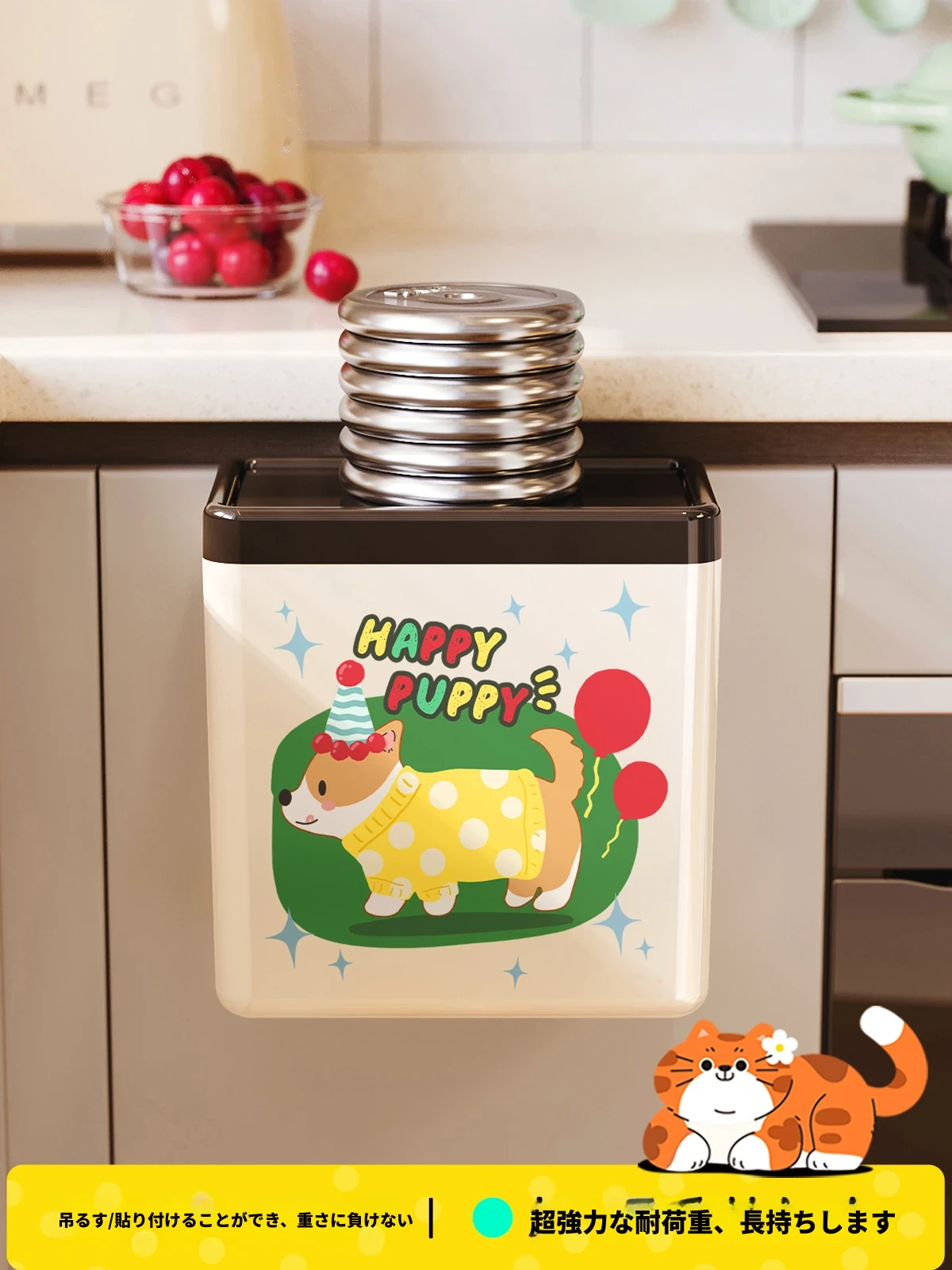 美世达カートゥーンキッチンゴミ箱 壁掛け式 大容量 おしゃれなデザイン トイレ・バスルーム用 蓋付きで清潔感アップ!