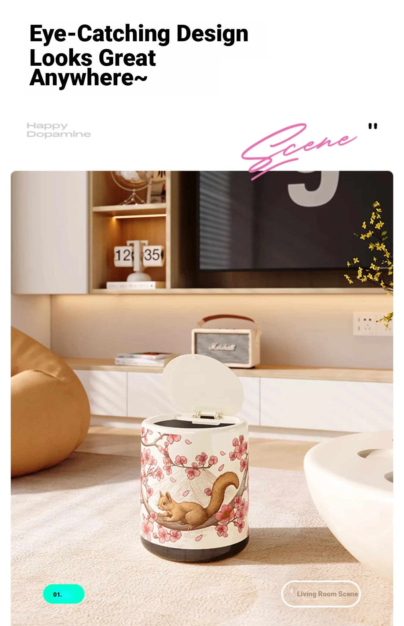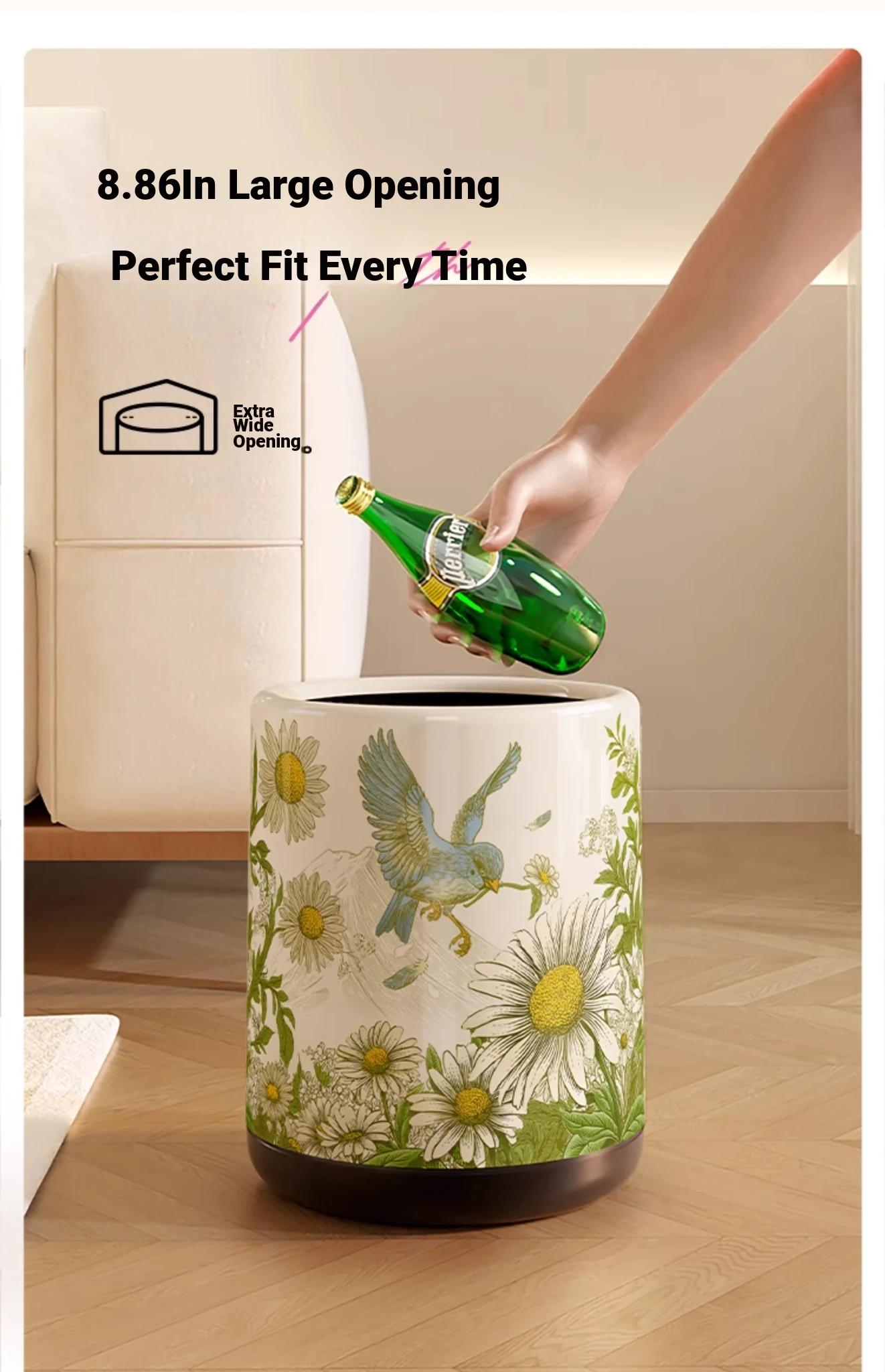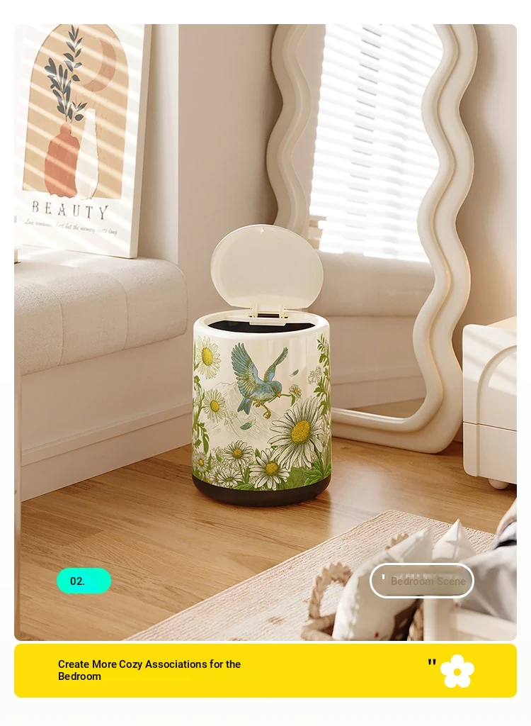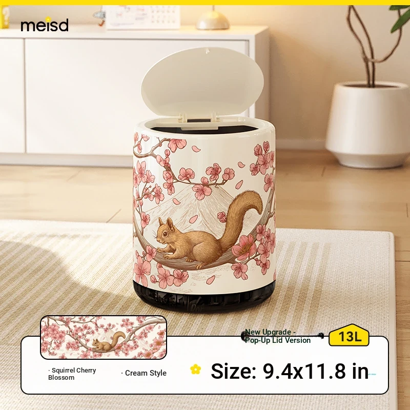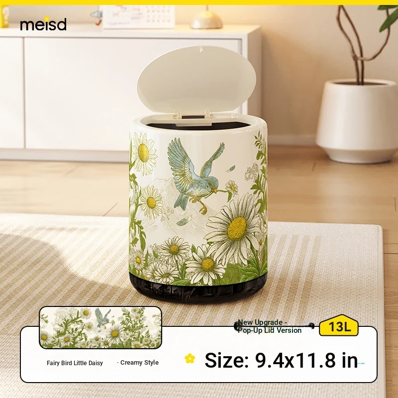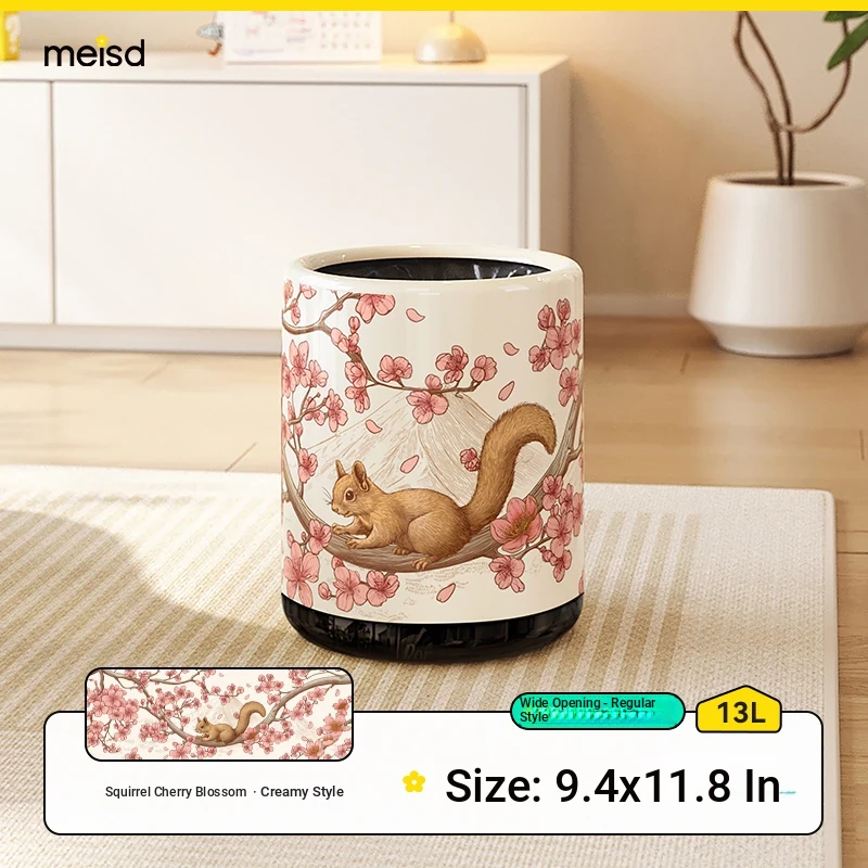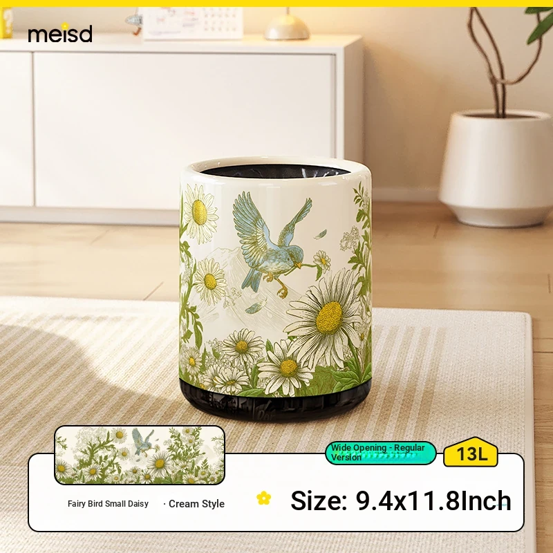 Meisida 2025 New High-Quality Vintage Style Trash Can - Large Capacity Covered Waste Bin for Home, Perfect for Living Room with Elegant New Chinese Design