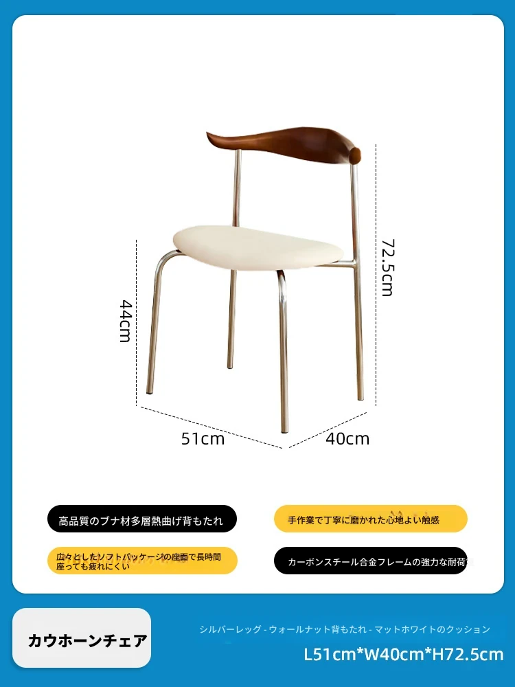 無垢材の背もたれ【座面ミルクホワイト】椅子脚シルバー(カーボンスチール)(宅配便)