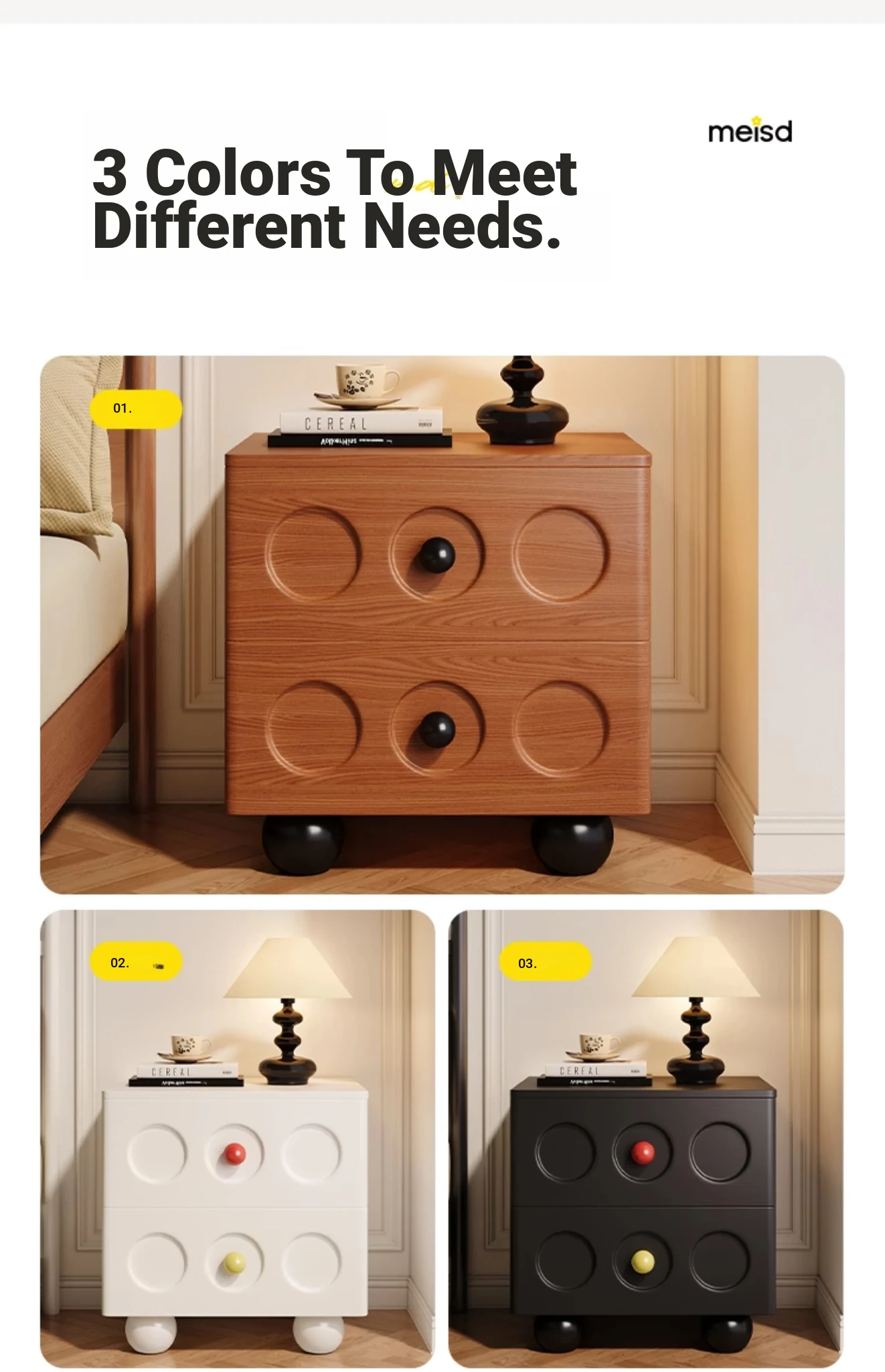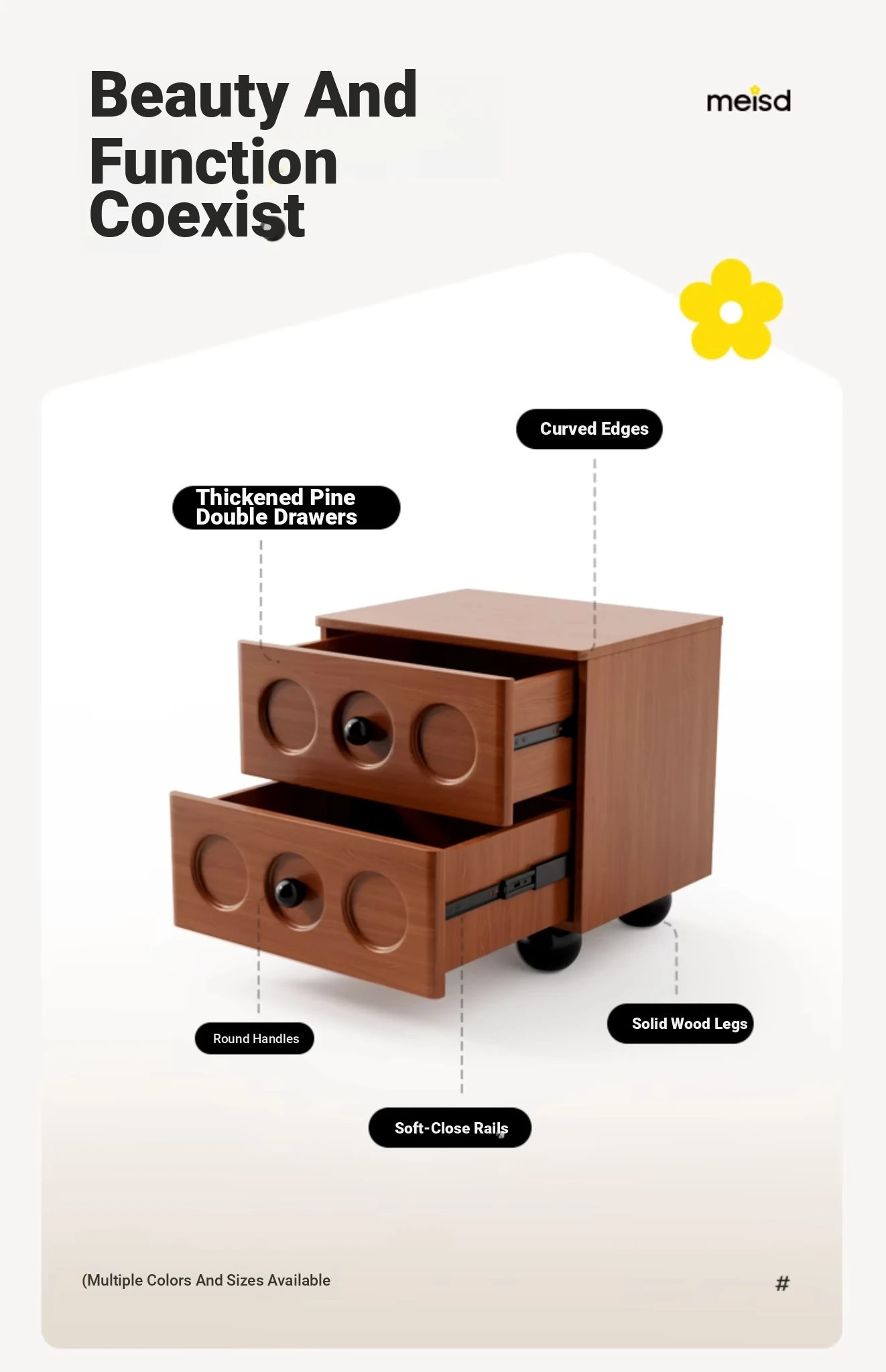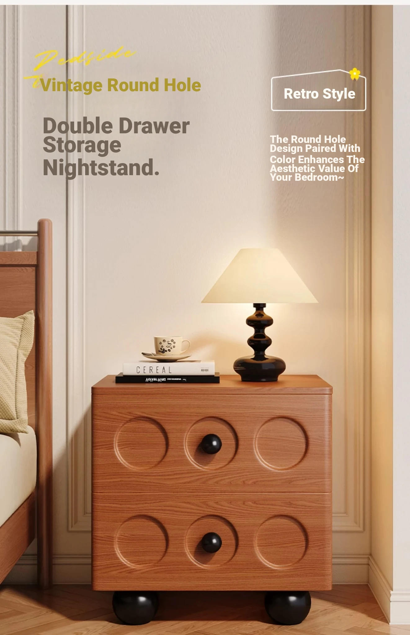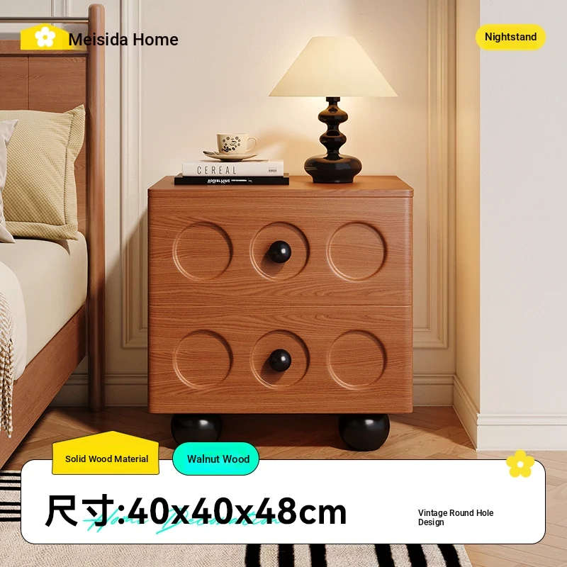 Meisida Vintage-Style Solid Wood Nightstand - Simple Modern Small Creative Side Table for Bedroom, Ideal for Home Use