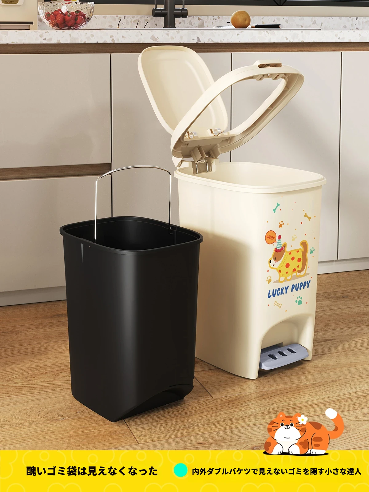 【ラッキーポチ】12L⭐-内外二重桶-⭐フットペダル押し式二重開放