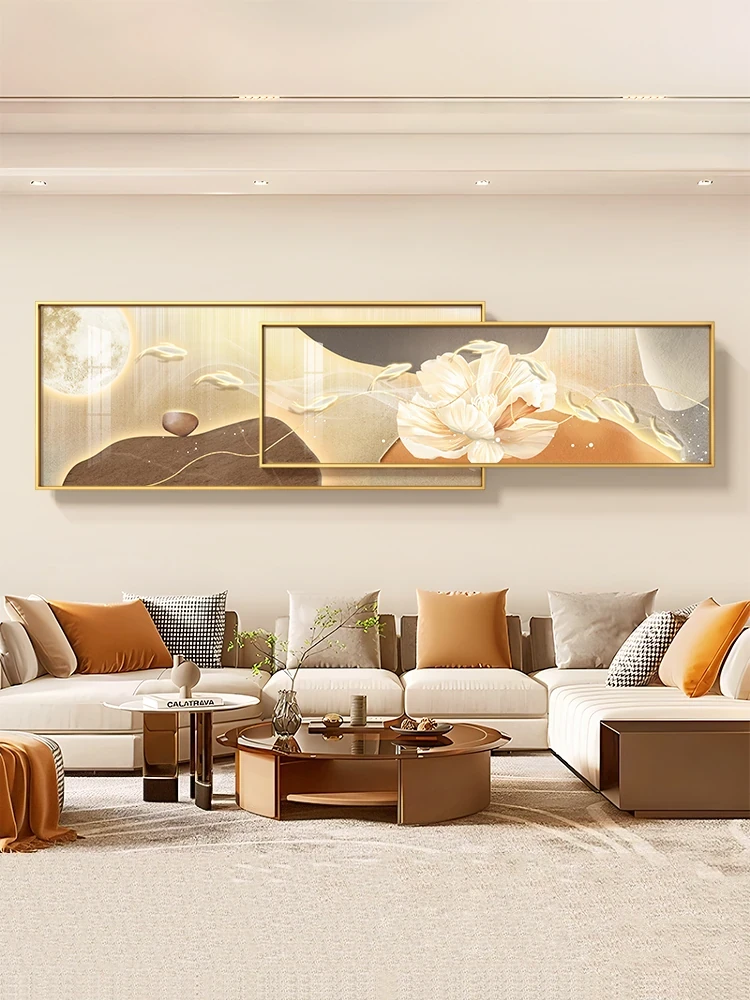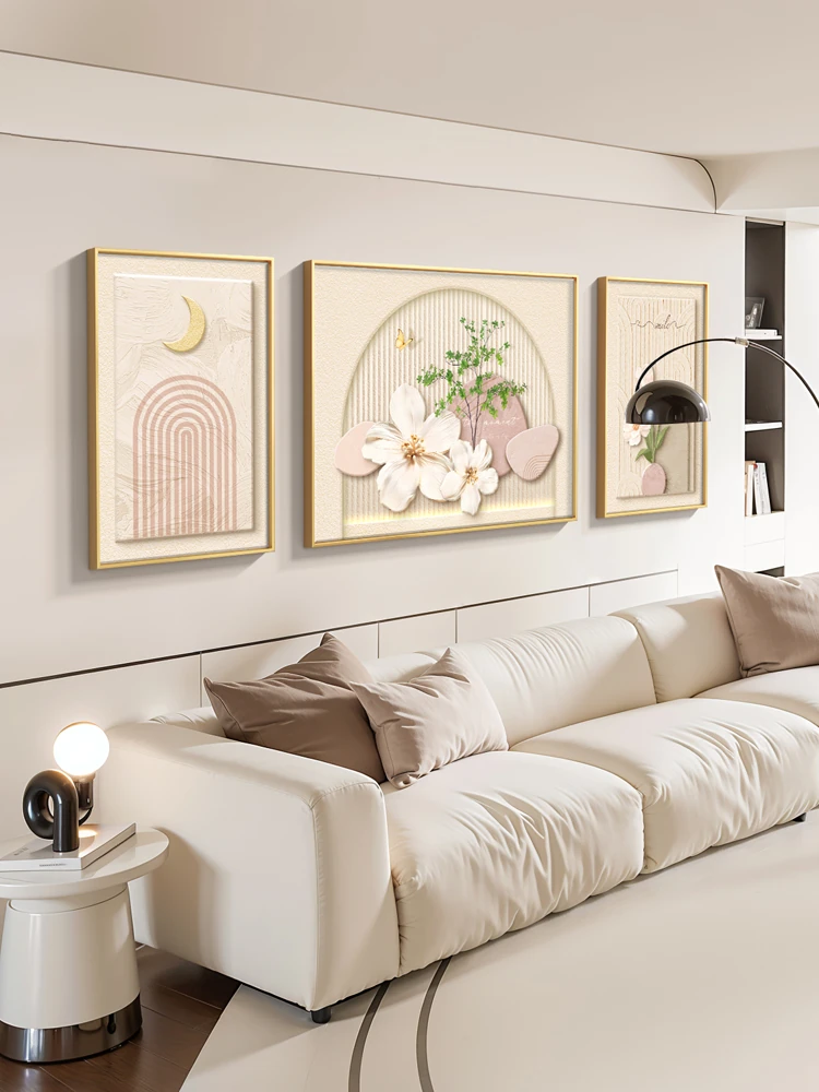 Wabi-Sabi Style Living Room Wall Art Set - Three-Piece Decorative Light and Canvas for Sofa Background, Perfect for Elevating Your Space with Tranquil Aesthetics and Supportive Design.