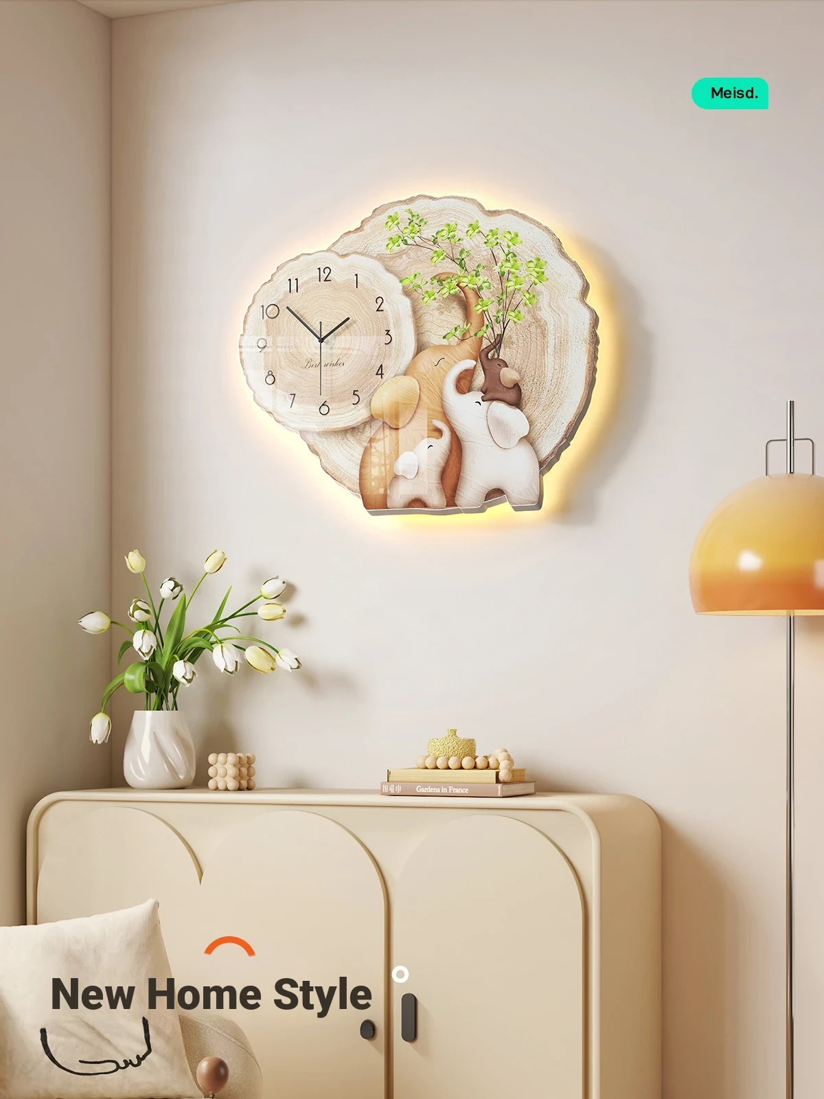 Mestida Creamy Style Living Room Wall Art - Modern Minimalist Oil Painting with Clock for Sofa Background Decoration - Perfect for Elevating Your Home Aesthetic!