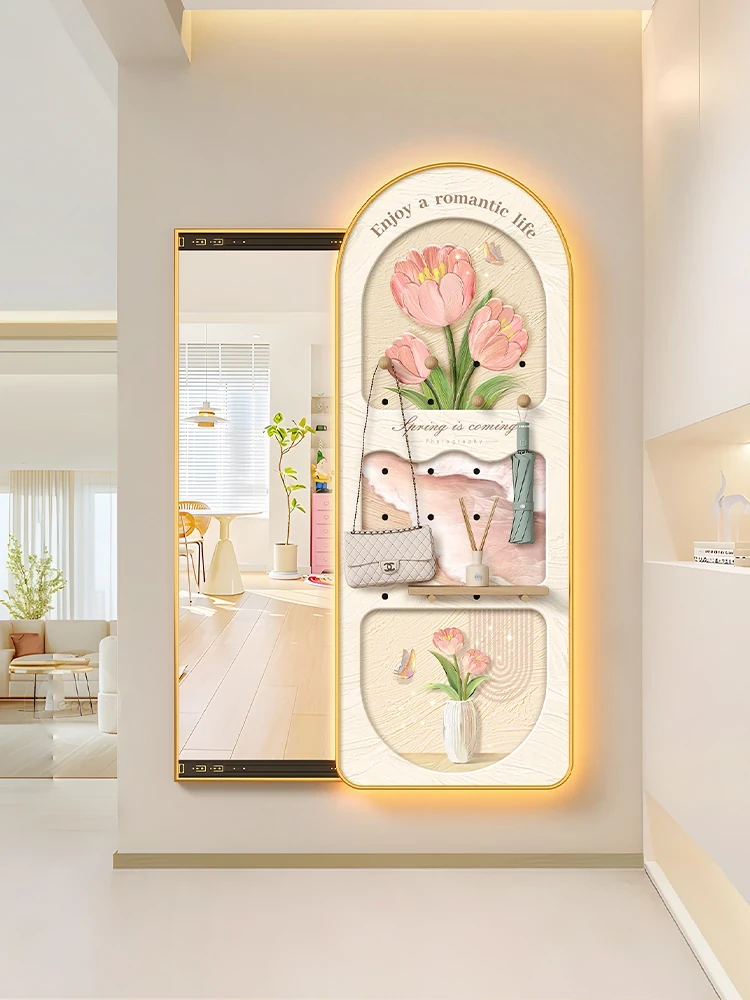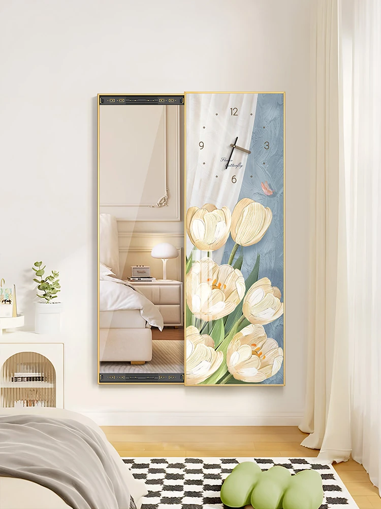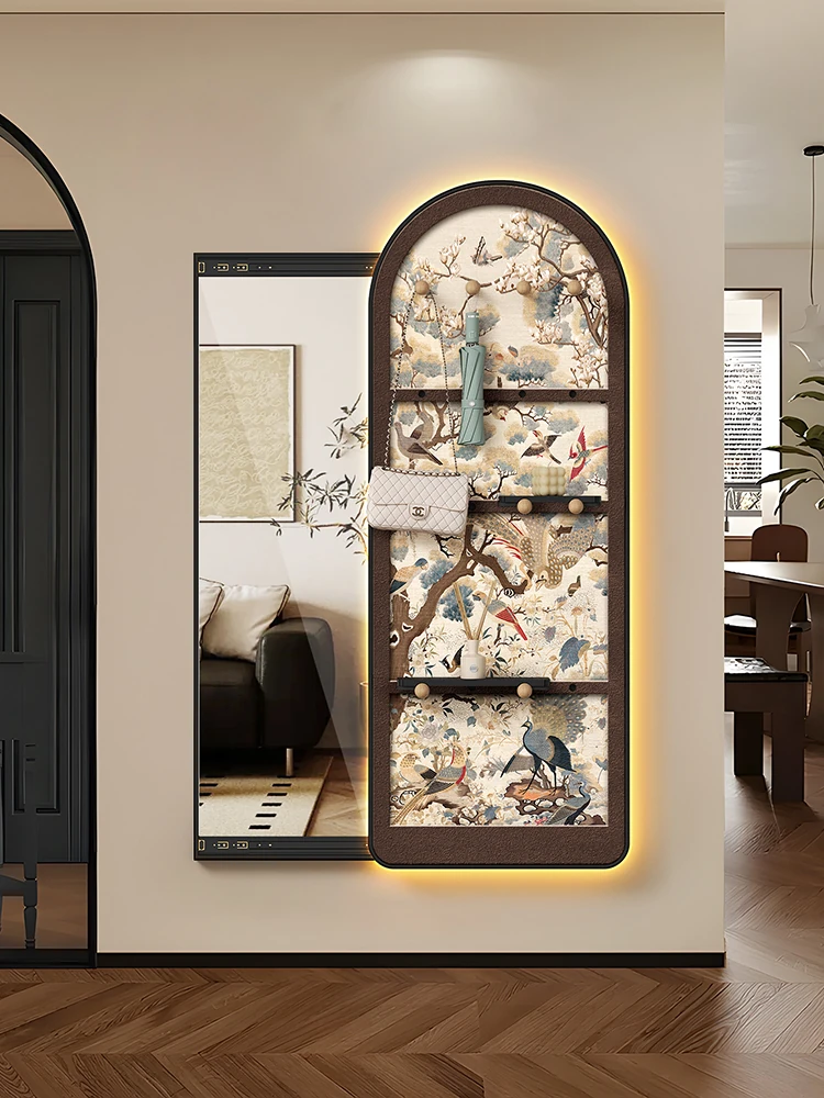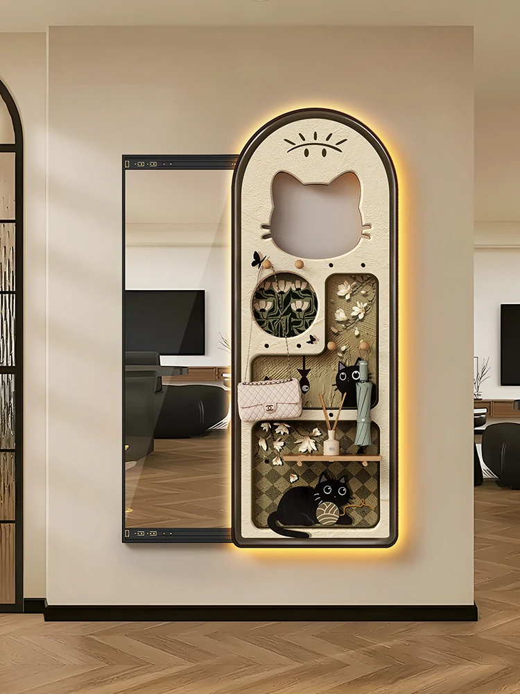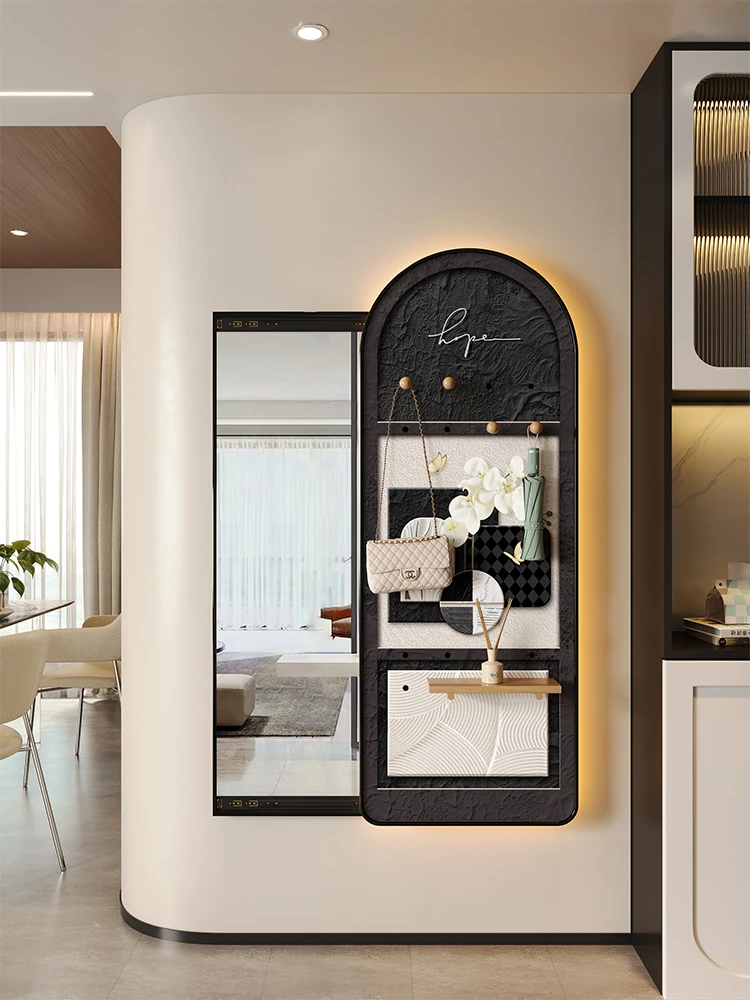 Hidden Full-Length Mirror Decorative Art Cream Style Hole Board Sliding Wardrobe Mirror Wall-Mounted Entryway Mirror