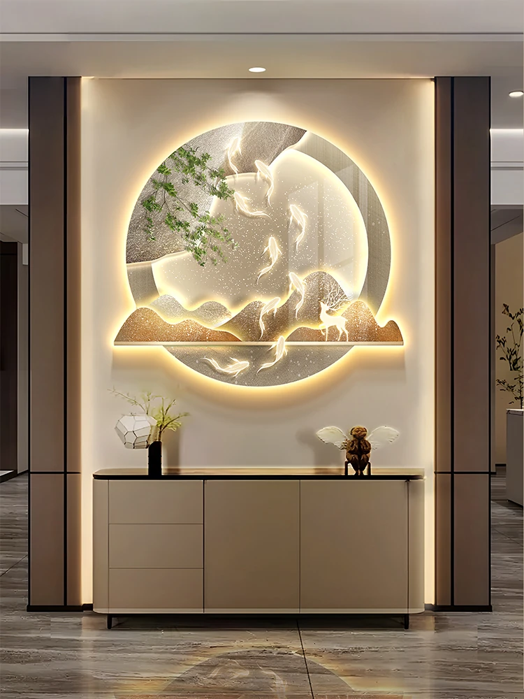 Meisida Nine Fish and Lotus Entrance Hall Decorative Painting - 2024 New Corridor Wall Art for Home Decoration